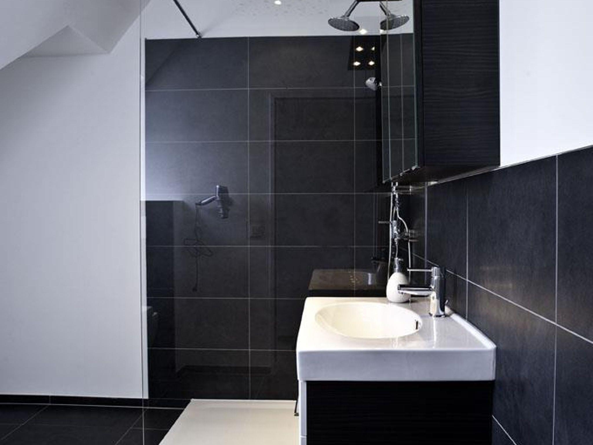 Ein großes, modernes Bad mit Walk- in Dusche, Handtuchheizung und Fön liegt im 1. Stock, im Erdgeschoß ist ein Gäste-WC vorhanden.