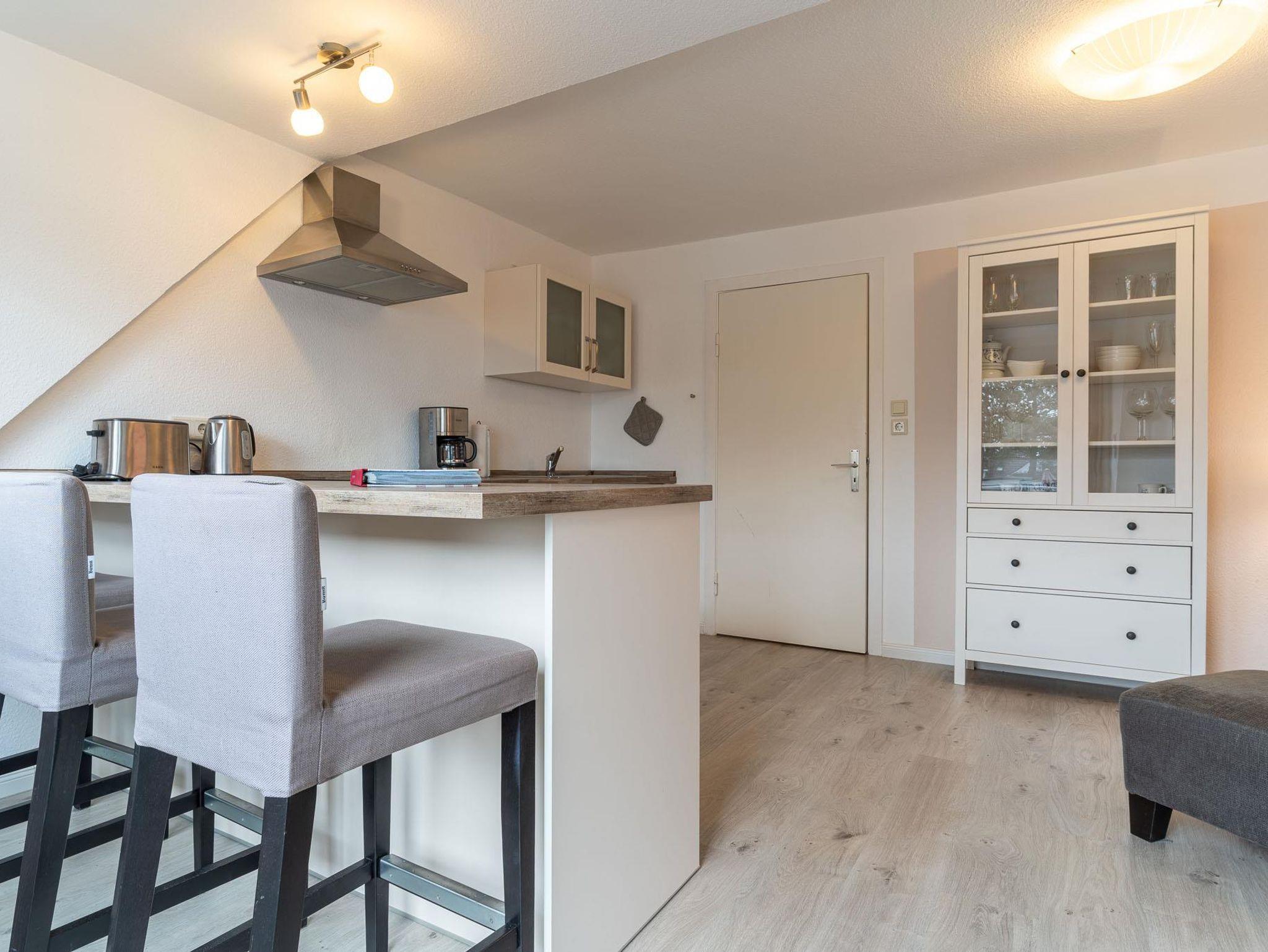 Die Wohnung Springfloot 2 (ca. 40 qm) liegt im Obergeschoss des Hauses, wurde 2014 saniert und ist für bis zu zwei Personen (Nichtraucher) geeignet.