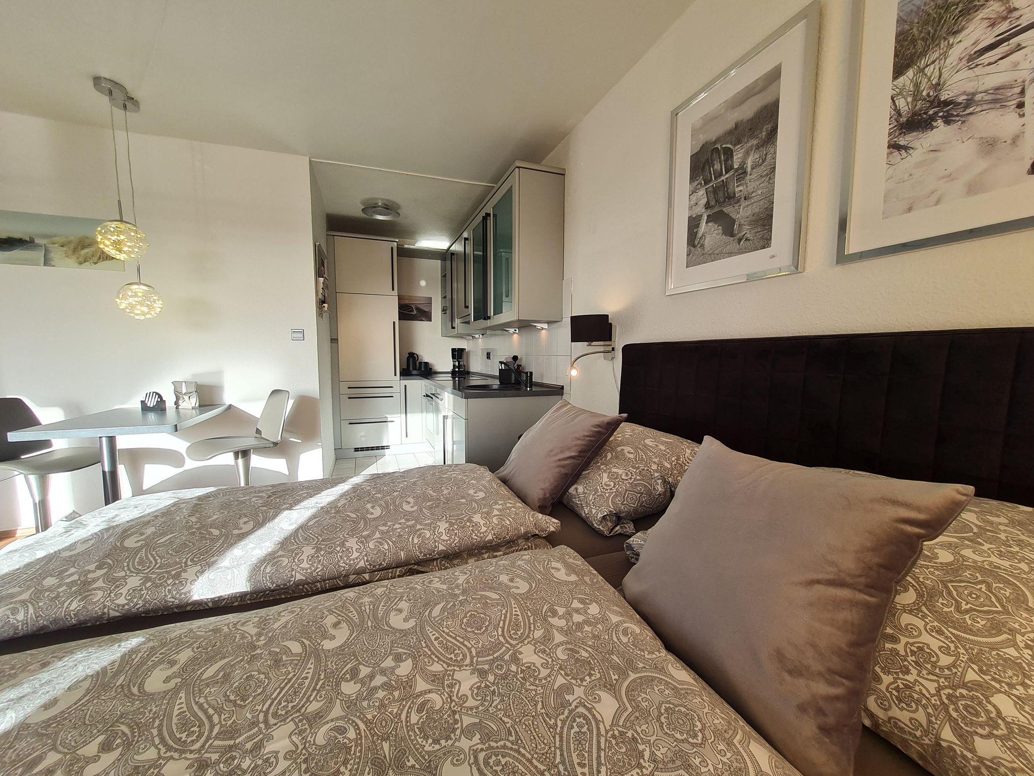 Erleben Sie den Komfort eines schön ausgestatteten Appartements mit Wohnschlafraum und einem großen Balkon. Ein Handtuchpaket und Bettwäsche kann dazu gebucht werden.