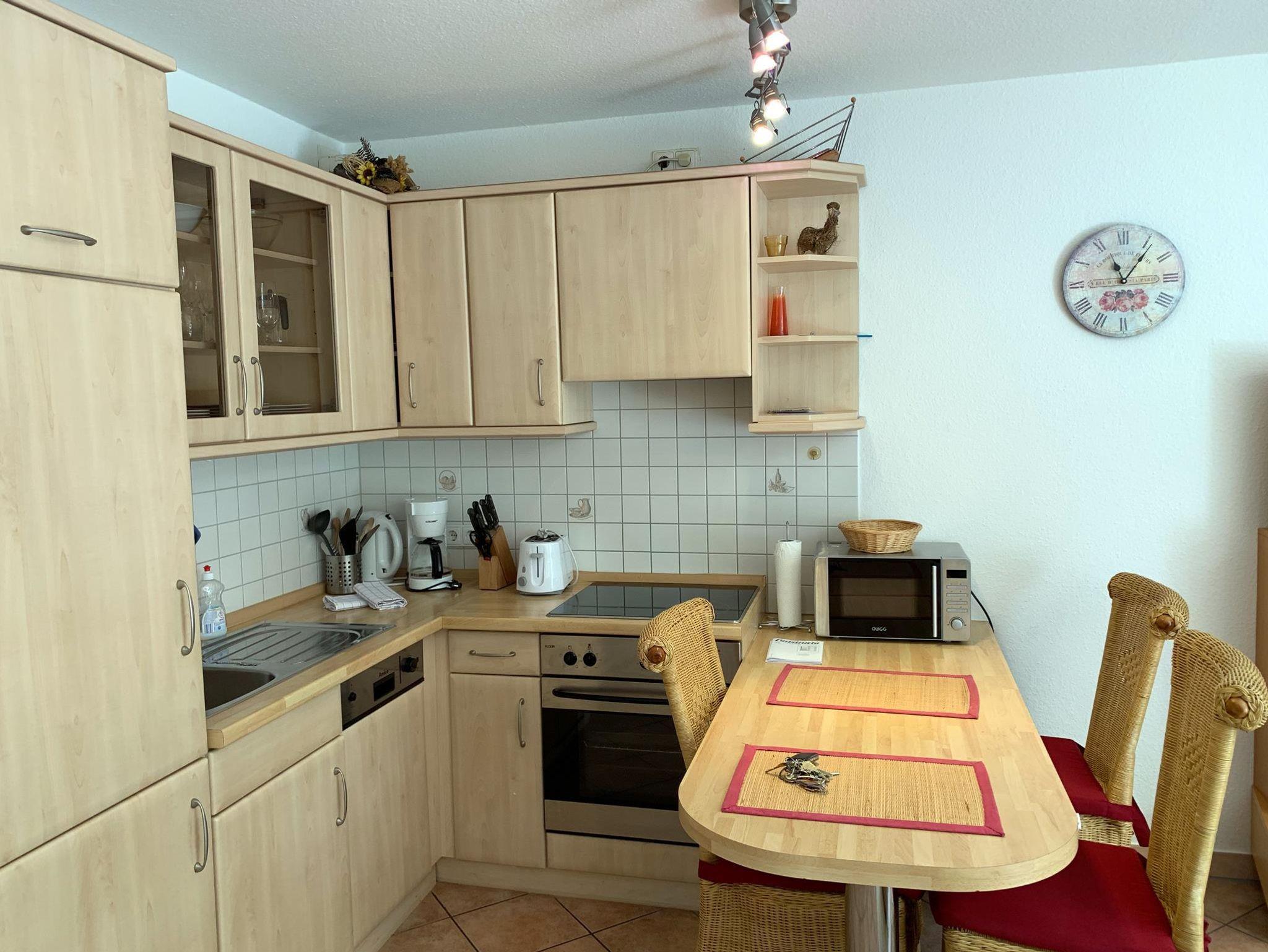 Lage: Süd- Westlage, 1. Obergeschoss, ruhig, Strand 500 m, Bäcker 350 m, Bahnhof 1 km, Einkaufen 1 km, Schwimmbad 1 km, Kurzentrum 600 m.