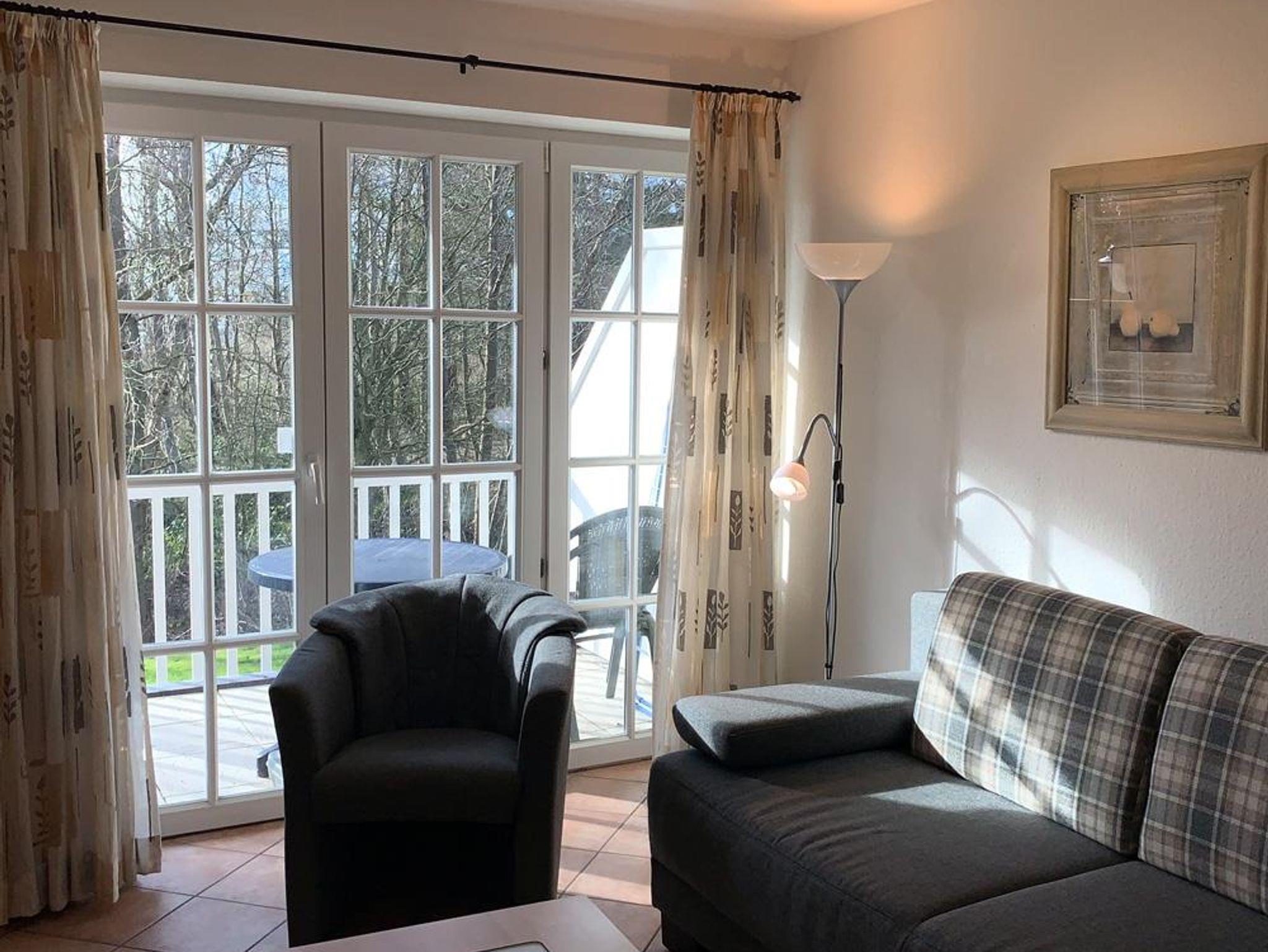 Gemütliche Wohnung in St. Peter-Ording nahe Strand und Zentrum mit eigenem Parkplatz und klarem Kiefernwald-Blick.
