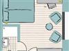 - 1x Schlafzimmer (1x Einzelbett 1,40 m und 1x Einzelbett 1,00 m) mit Duschbad (innenliegend) und Balkon (Westseite)