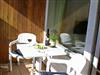 Sie teilt sich wie folgt auf: Eingangsdiele mit Garderobe, Schlafzimmer mit 2 Einzelbetten, Duschbad mit WC. Der großzügige Wohnraum mit direktem Zugang zur Loggia überzeugt mit seiner gemütlichen Sitzecke, der modernen weißen Küche , der Essecke und als weitere Schlafmöglichkeit 1 Schrankbett,