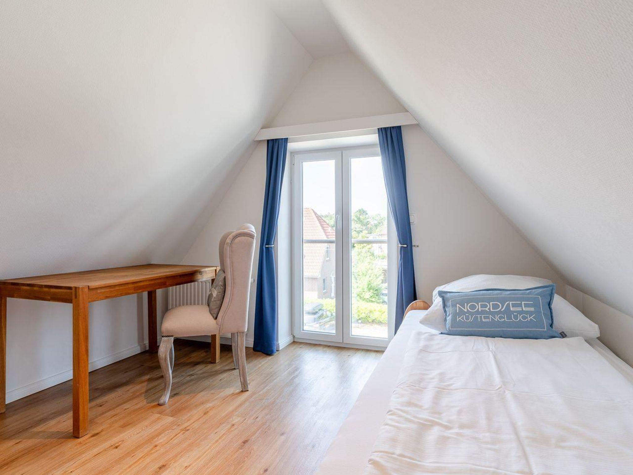 Im ersten Obergeschoss erwarten Sie zwei gemütliche Schlafzimmer mit Verdunklungsvorhängen sowie ein geräumiges Badezimmer mit Dusche und Fußbodenheizung für höchsten Komfort. Im zweiten Obergeschoss finden Sie einen weiteren Raum, der ideal als zusätzliches Schlafzimmer genutzt werden kann. Ausgestattet ist das Haus mit einem Smart-TV und einem weiteren Fernseher im großen Schlafzimmer sowie WLAN und Insektenschutzgittern für ungestörte Nächte.
