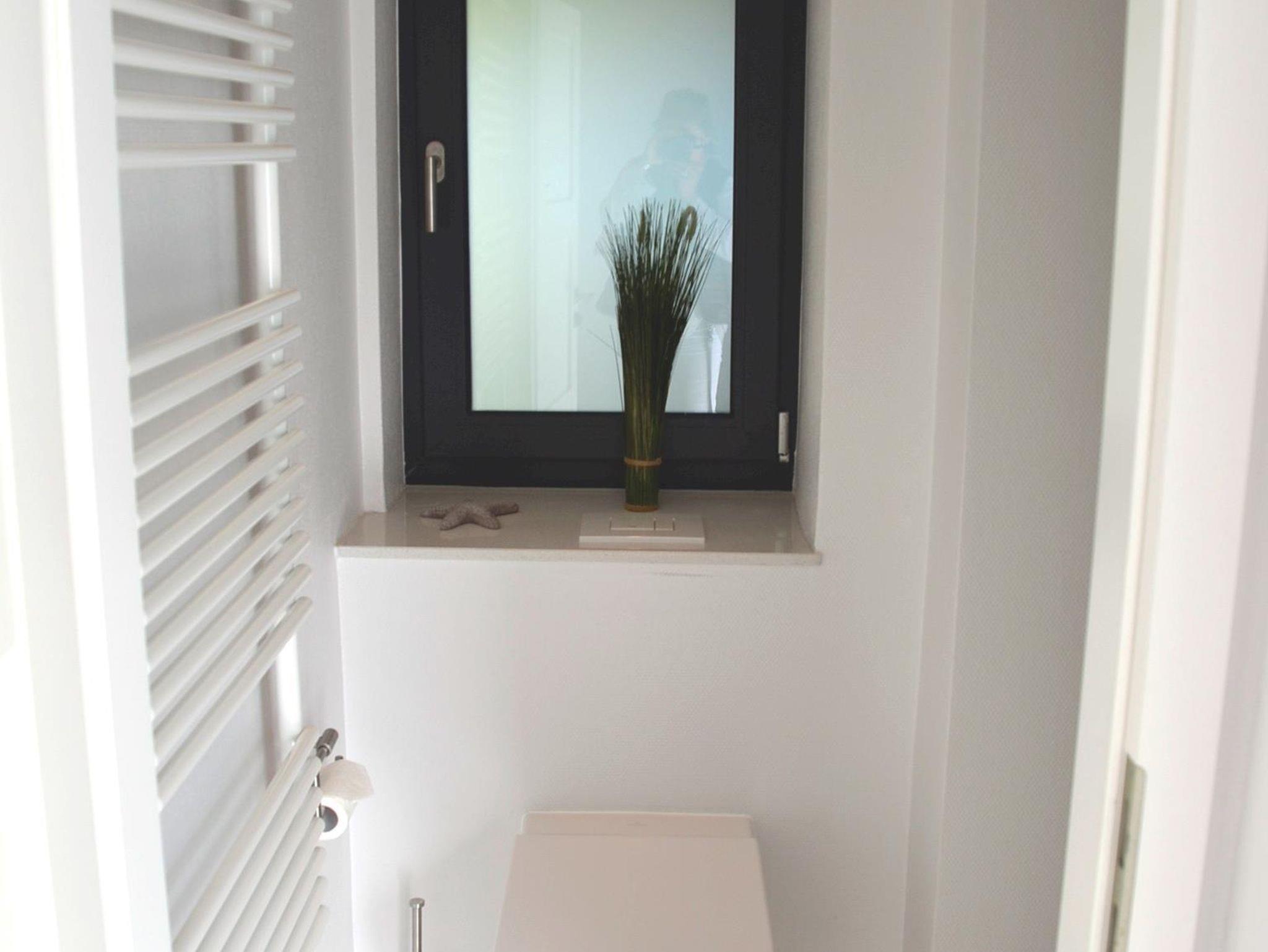 Ein kleines Duschbad befindet sich im Erdgeschoß, im Obergeschoß ein großes Badezimmer mit Badewanne, Dusche und 2 Waschbecken.