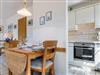 Wohnzimmer mit Schlafsofa (150x190cm), 2 Sesseln, Esstisch mit 4 Stühlen, TV (Sat) mit Radioempfang und BluRay-Player. Direkter Zugang zur möblierten Gartenterrasse nach Westen mit Sonnenmarkise. Offene Küche mit Backofen, Kühlschrank mit Gefrierfach und Mikrowelle.