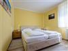 Schlafzimmer mit Doppelbett (2x 90x200cm), Kleiderschrank und Radiowecker.
