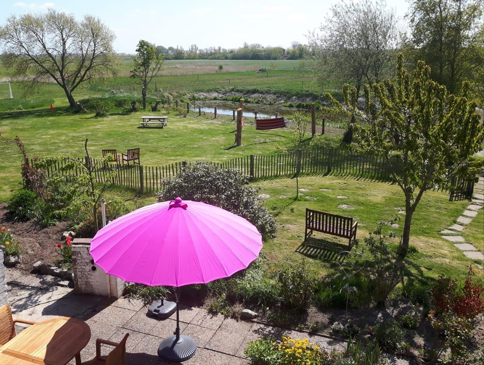 Unser Landhaus hat einen herrlichen Garten, der Sie einlädt, zu entspannen und in Ruhe den weiten Blick über die schöne nordfriesische Landschaft zu genießen.