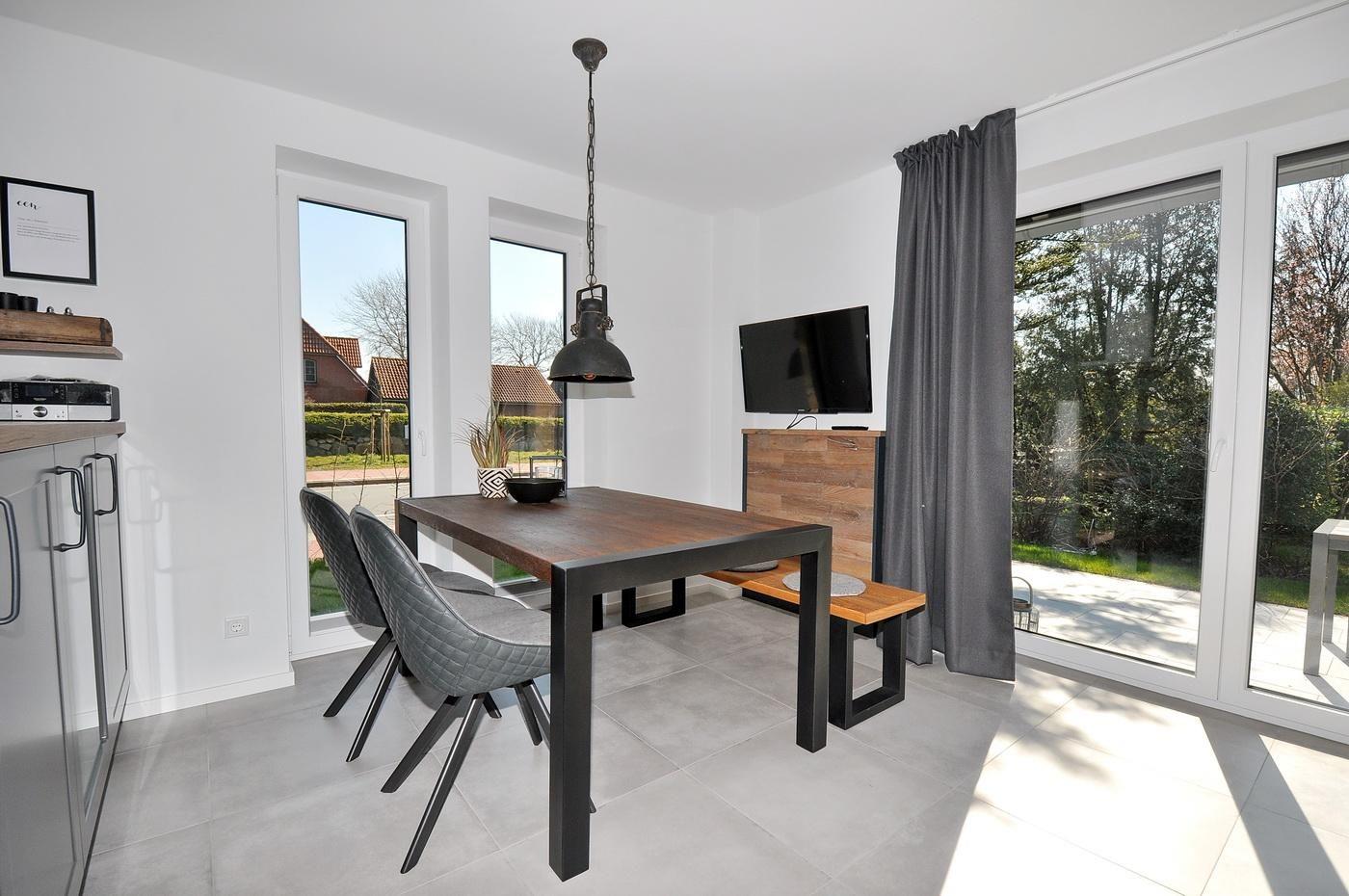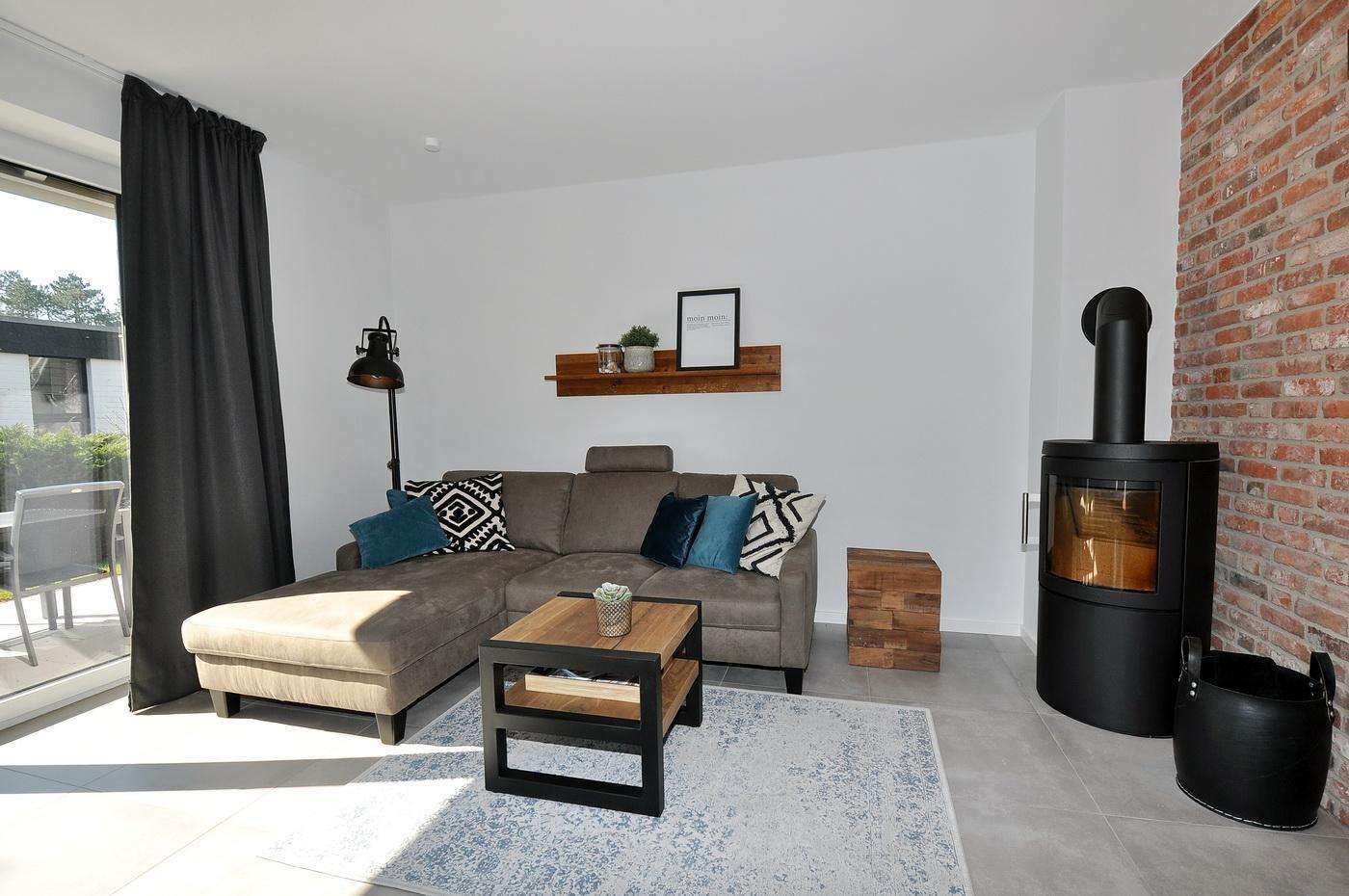 Moderne Doppelhaushälfte in St. Peter-Böhl mit Terrasse, Kamin und Hund willkommen, ideal für erholsamen Urlaub an der Nordsee.