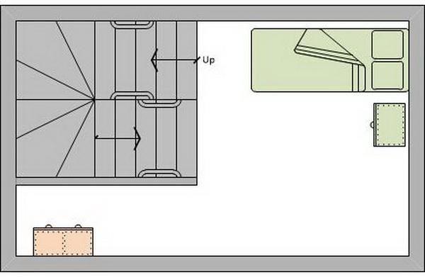 Dachgeschoss: hier erwartet Sie eine zusätzliche Schlafmöglichkeit in Form eines Einzelbettes (90 x 200 cm)