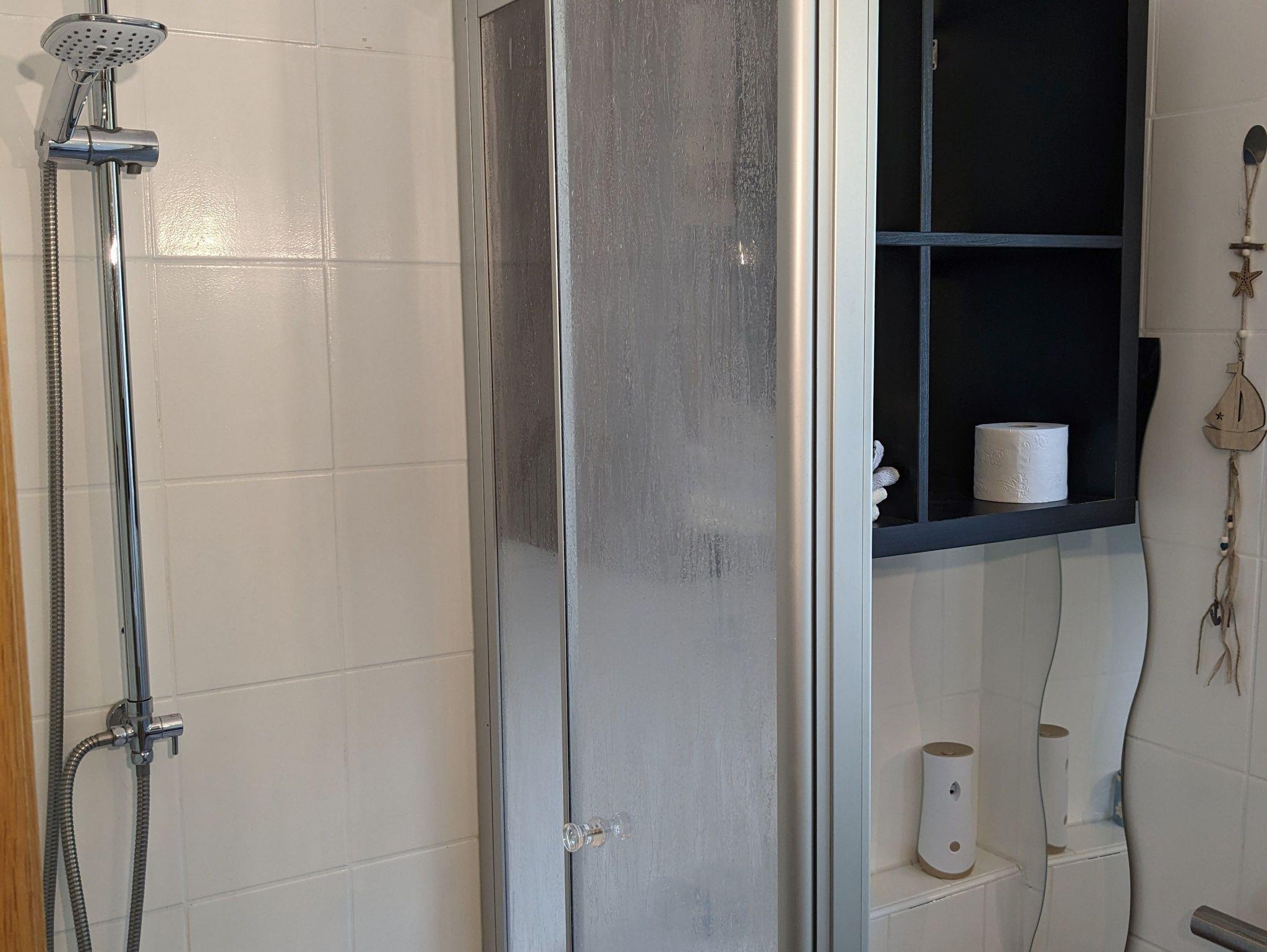 Zugang zur gemütlichen Terrasse, mit tollem Ausblick über das Esszimmer möglich. Kleines Bad mit ebenerdiger großer Dusche.