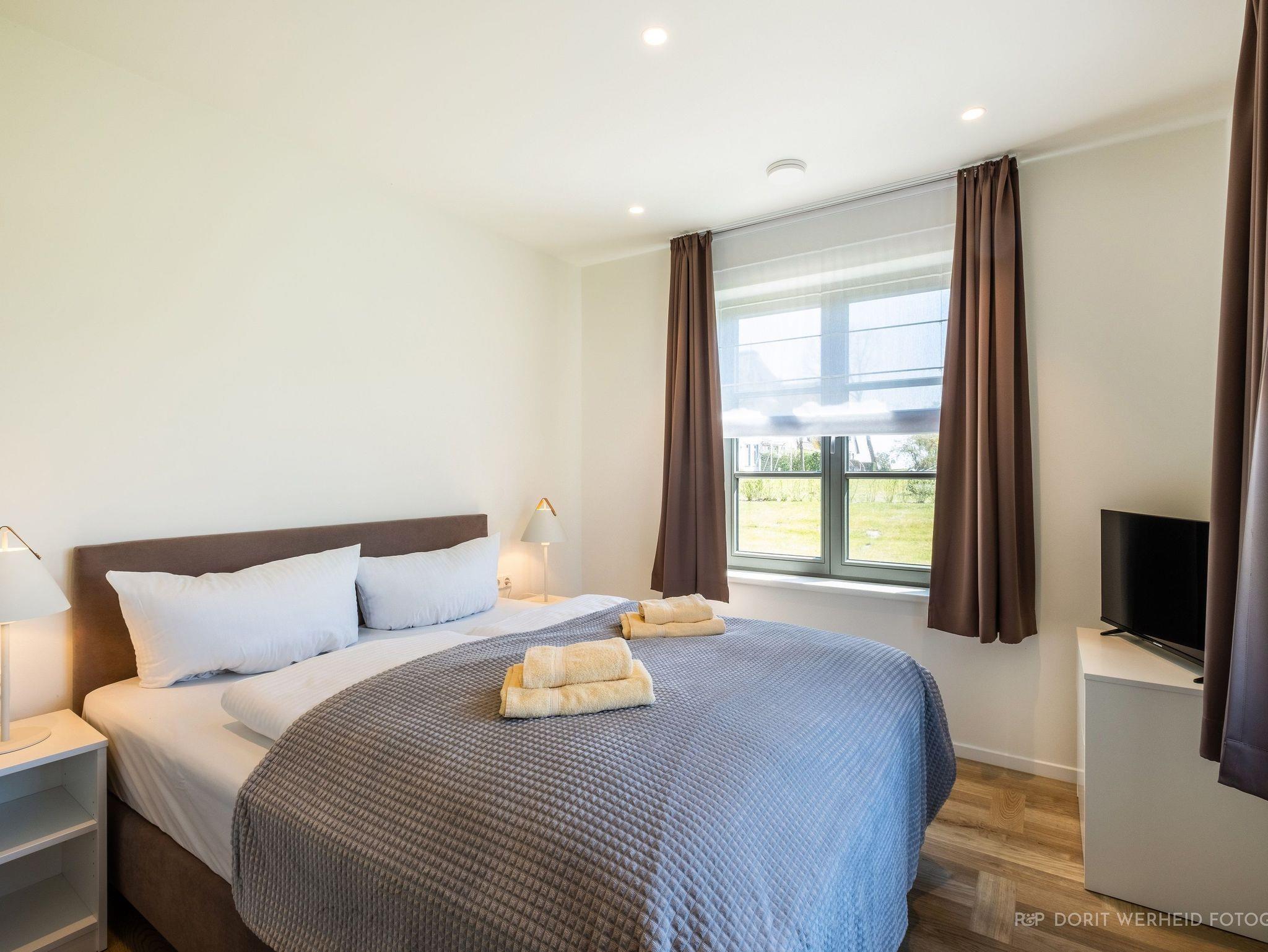 Die Reet gedeckten Häuser wurden in nachhaltiger Holzbauweise errichtet und die Einrichtung ist durch helle sowie freundliche Farben geprägt. Der Blick auf die Haffküste und die umliegende Natur machen Ihren Urlaub einzigartig.