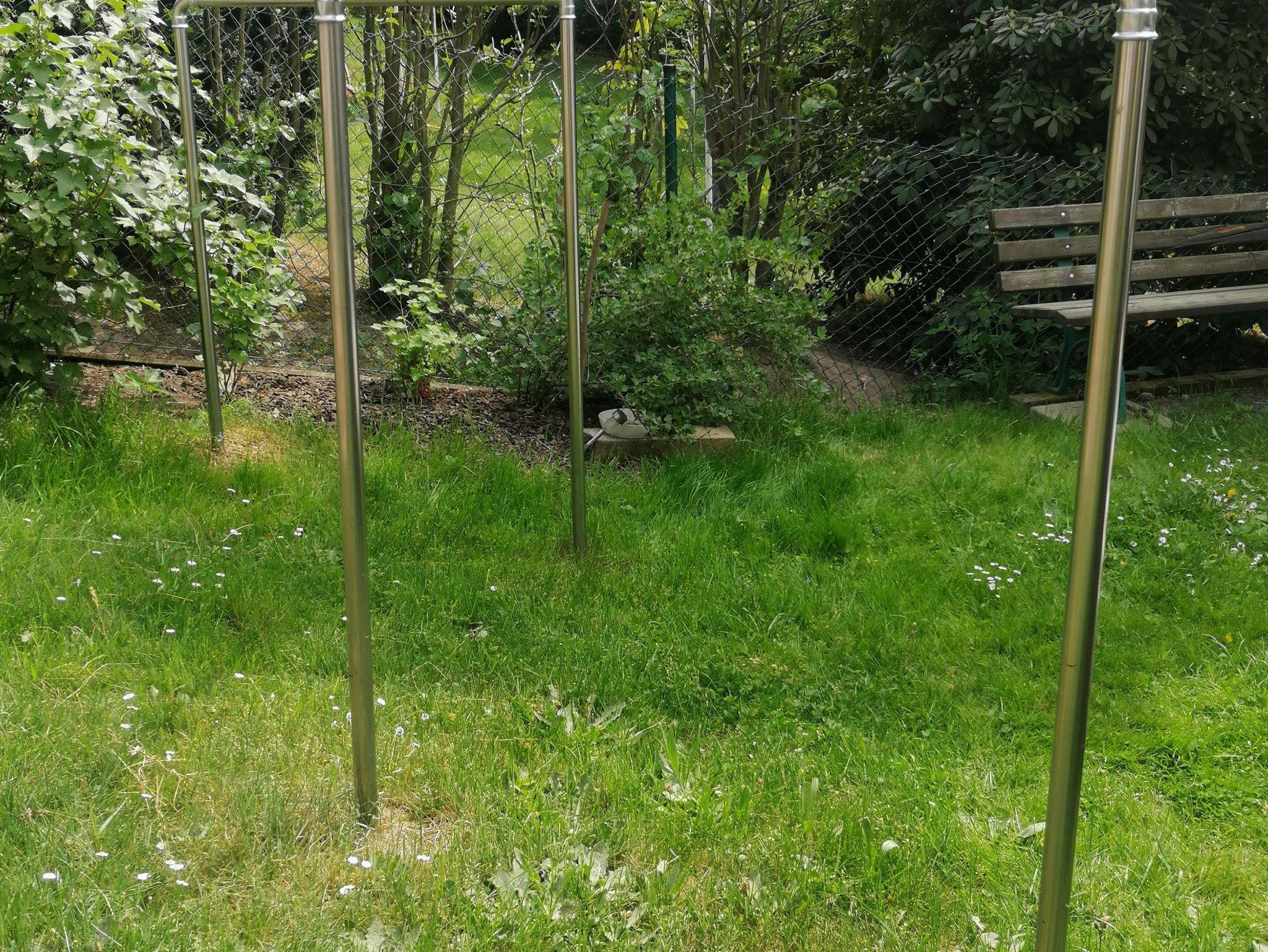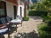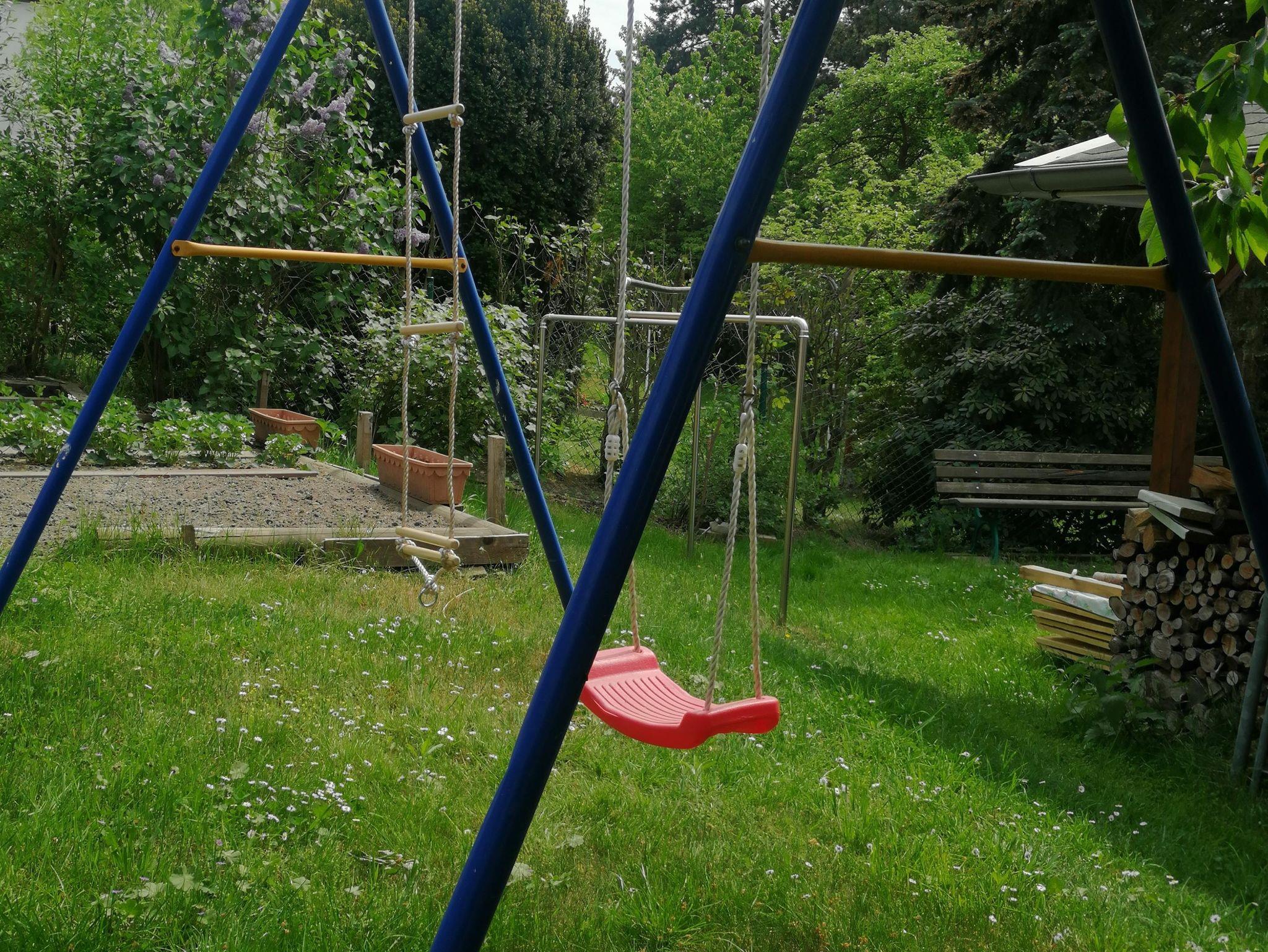 Im Garten am Haus stehen 2 Schaukeln sowie ein kleines Reck für die Kinder zur Verfügung. Weiterhin stehen auch 3 Saunaliegen für gemütliche Sonnenbäder im Garten bereit. Für die gemeinsame Nutzung lädt noch eine Sitzecke im Grünen zum Verweilen ein, welche durch einen Pavillon (ca. 5,0 m x 5,0 m) überdacht ist.