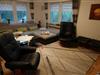 Wohnzimmer: Hell und modern mit Wohnzimmerschrank, bequeme Couch mit Schlaffunktion, zwei bequeme Fernsehsessel, Tisch, Blu-Ray/DVD Player, Satellitenanlage, 55 Zoll Samsung TV , Spiele, DVD, Bücher, W-LAN.