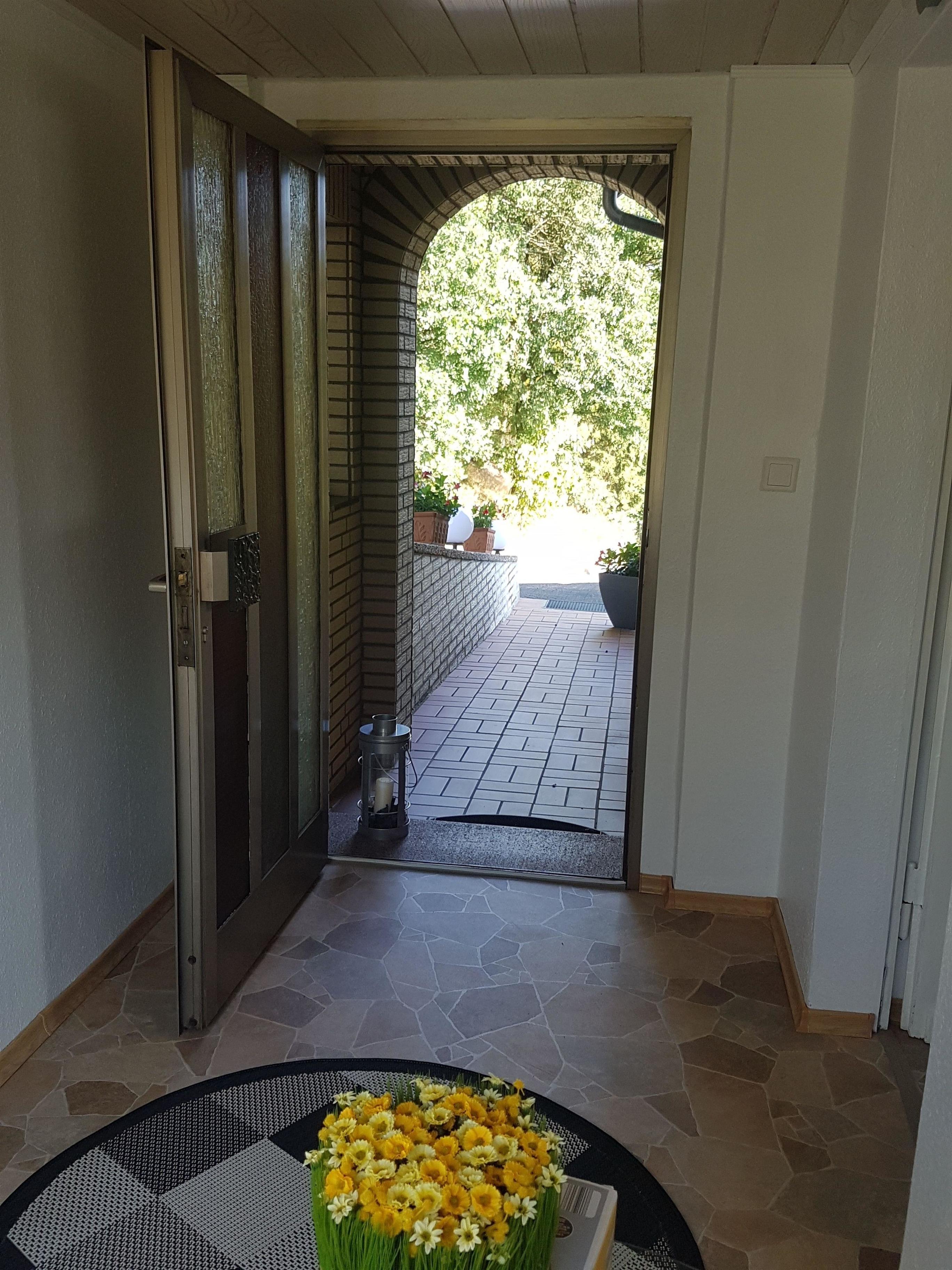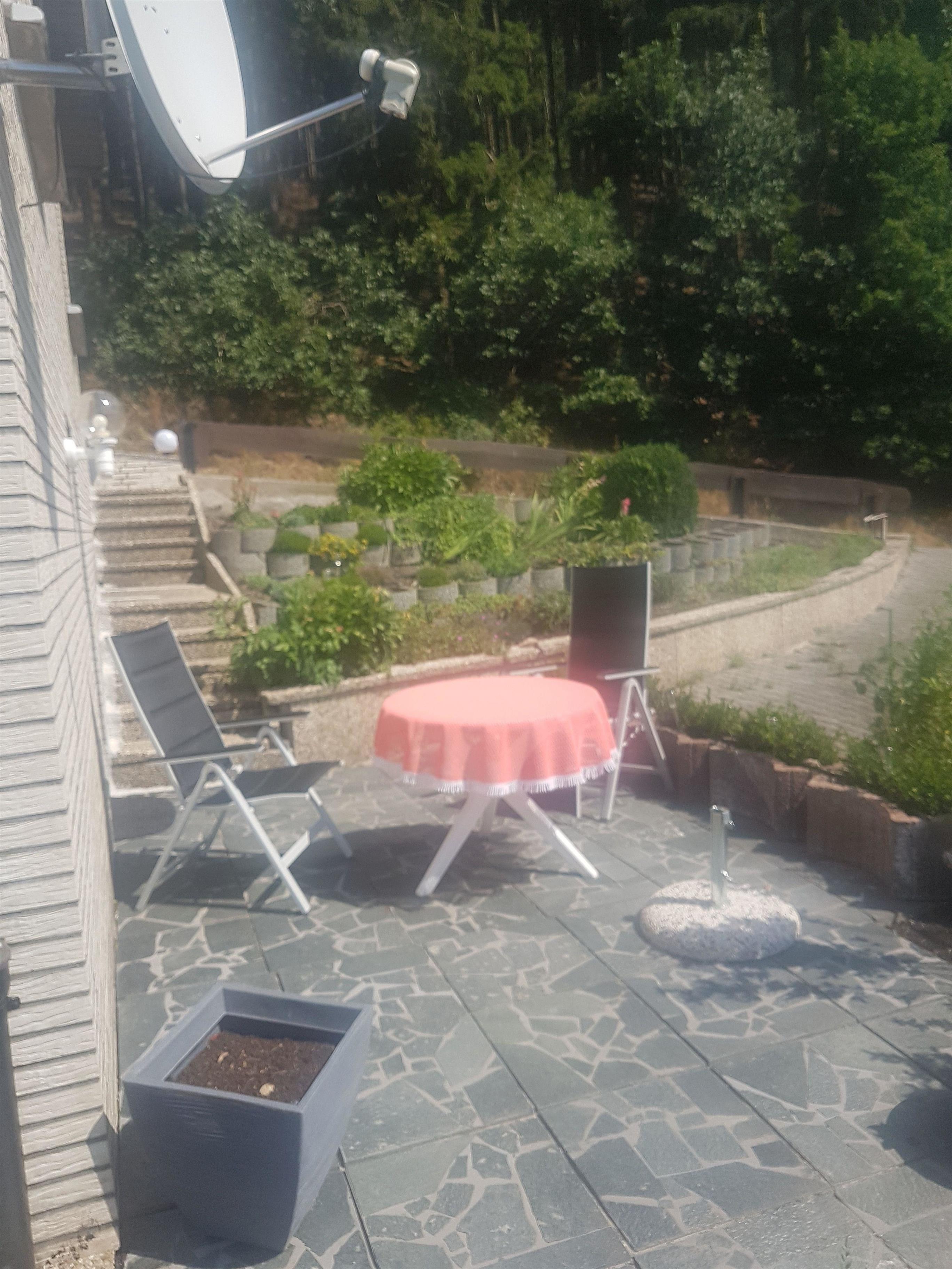 Das Haus verfügt über zwei große Terrassen die über eine Außentreppe erreichbar sind. Gartenmöbel befinden sich im Keller über Außentreppe , große Sonnenschirme, Parkplatz direkt oberhalb am Haus. Der Haupteingang und der Kellerraum mit den Gartenmöbeln ist von der Terrasse aus mit einem Zentralschlüssel zu öffnen.