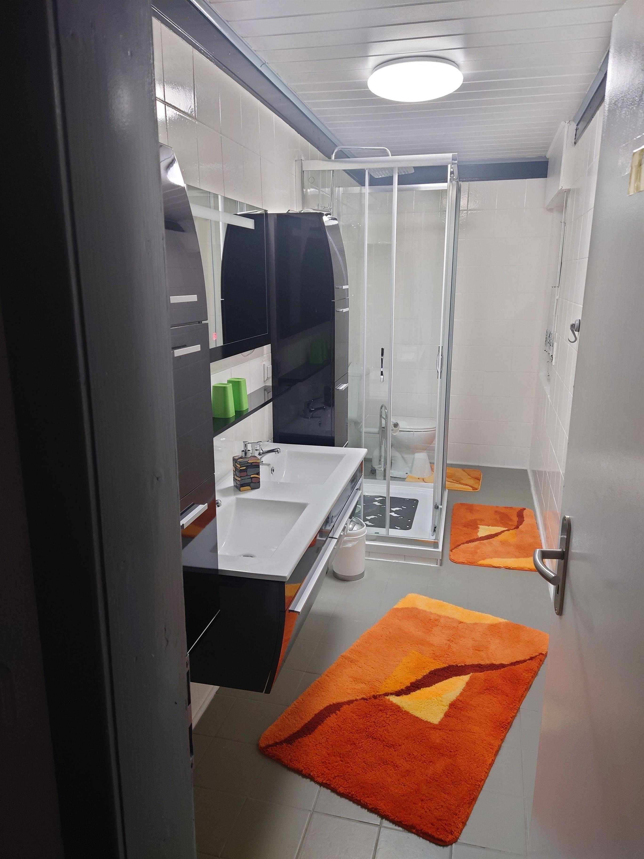 Pro Buchung bis zwei Personen hat man nur Anspruch auf das untere Schlafzimmer und das untere Badezimmer. Alles auf einer Ebene.