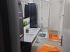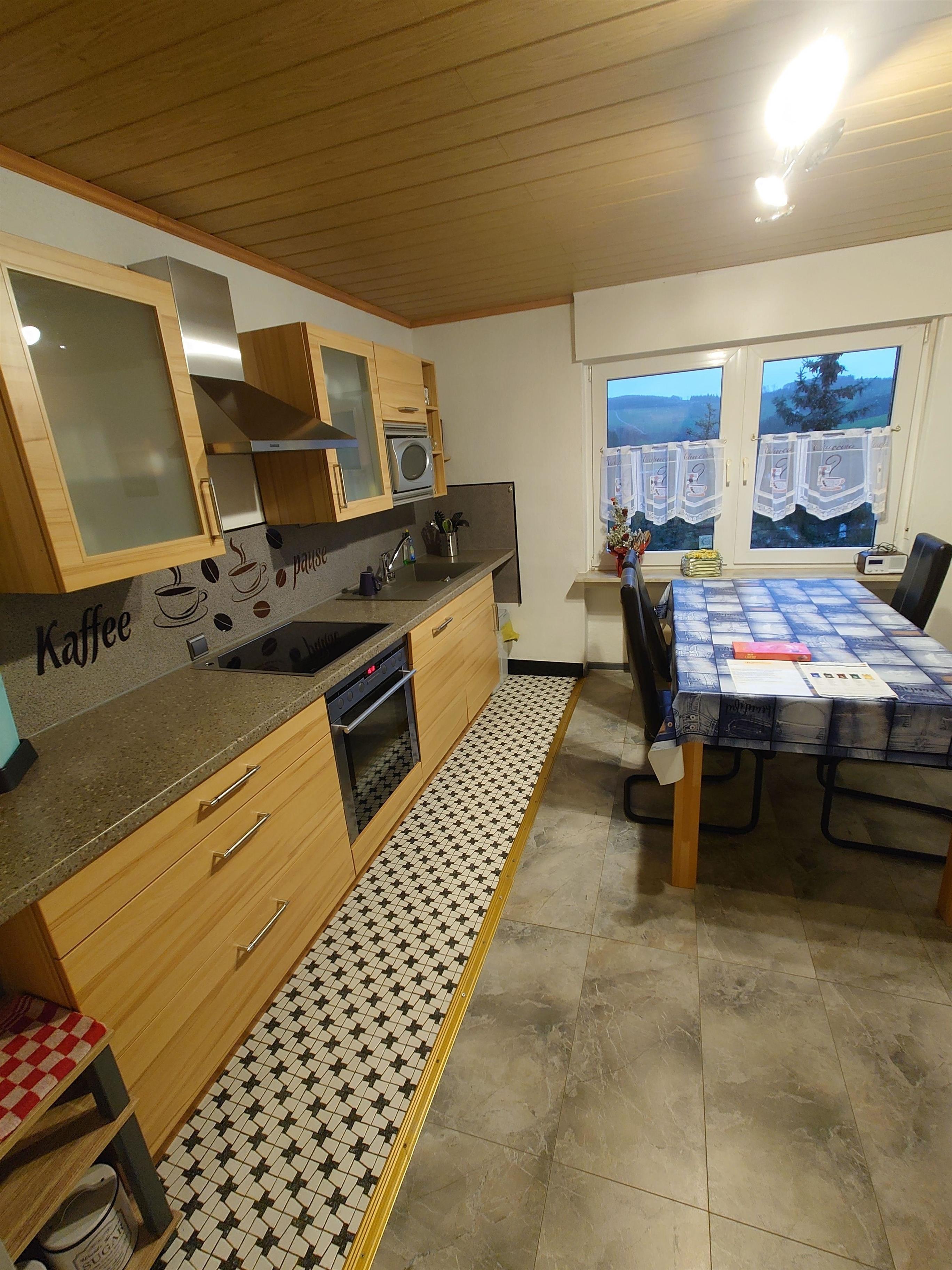 Küche hell und modern mit Abstellraum. Küchenzeile mit Herd und Umluftbackofen, Mikrowelle, Kaffeemaschine, Spülmaschine, Toaster, Wasserkocher, Eierkocher, Kühl/Gefrierkombination, DAB+Radio usw.