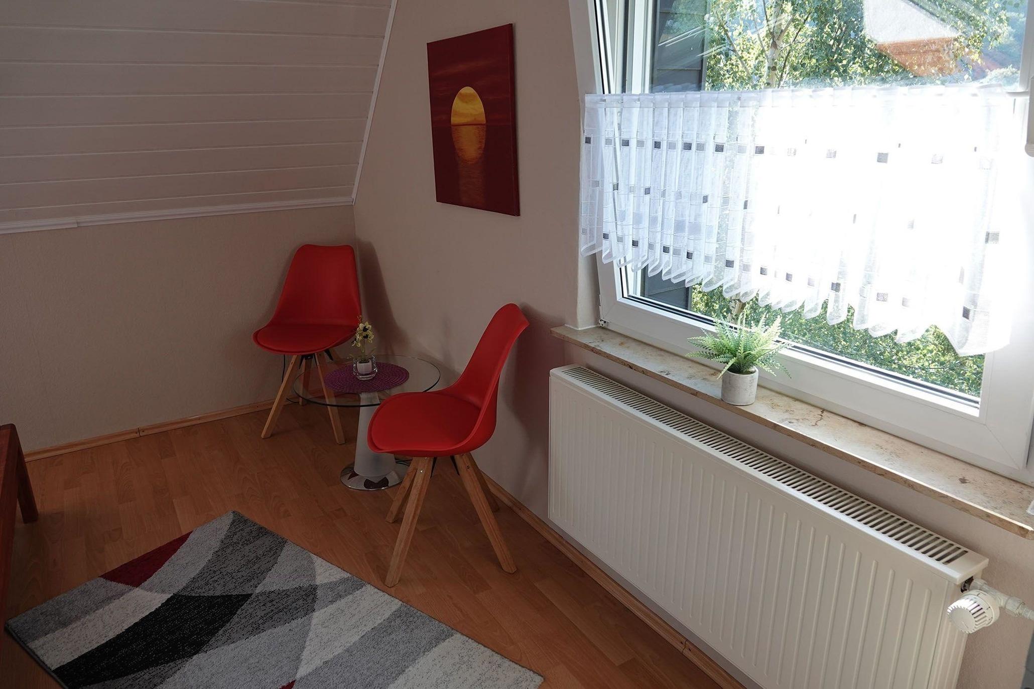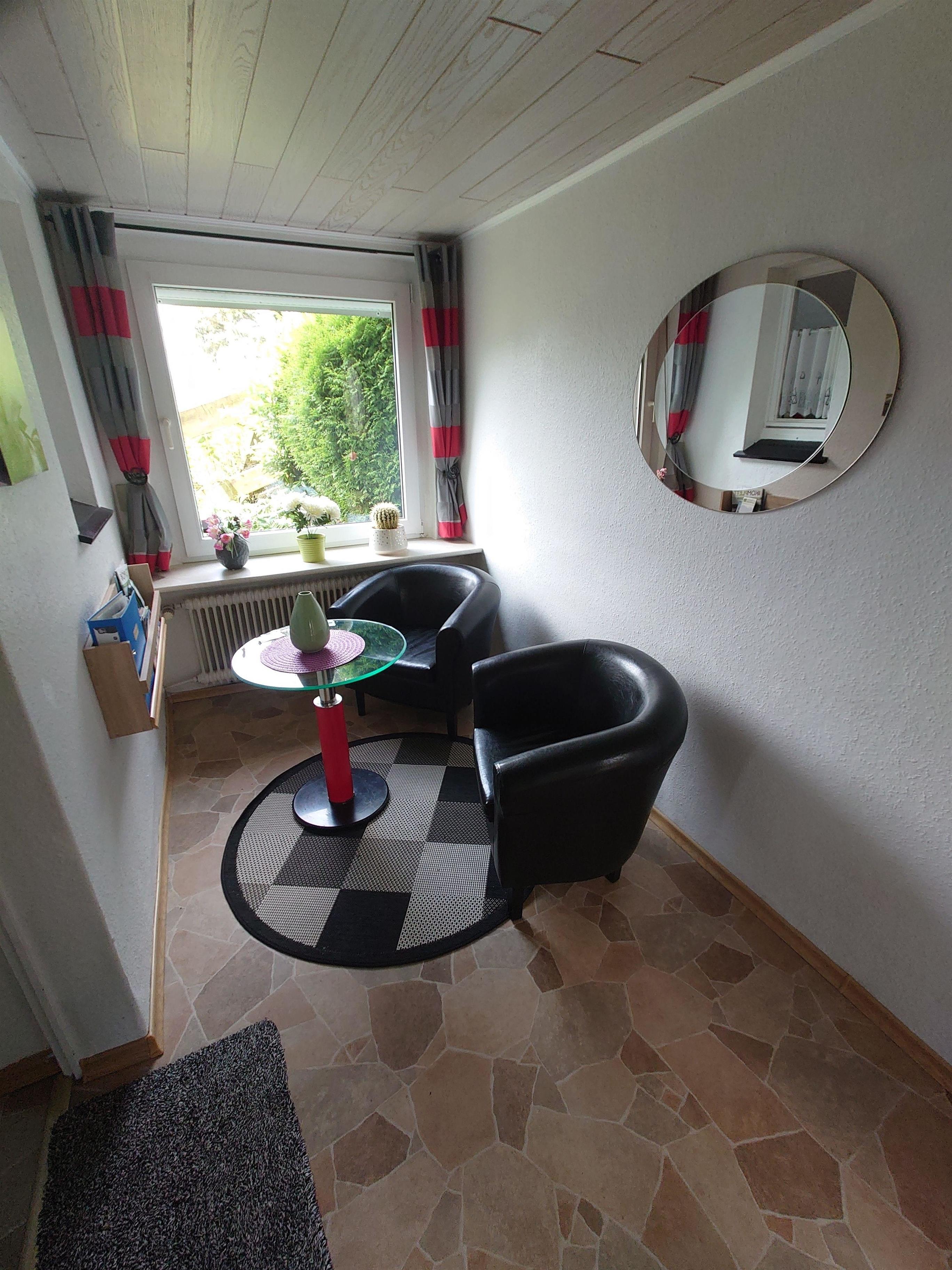 Diele 1: Eingangsbereich mit zwei Stühlen und Tisch.