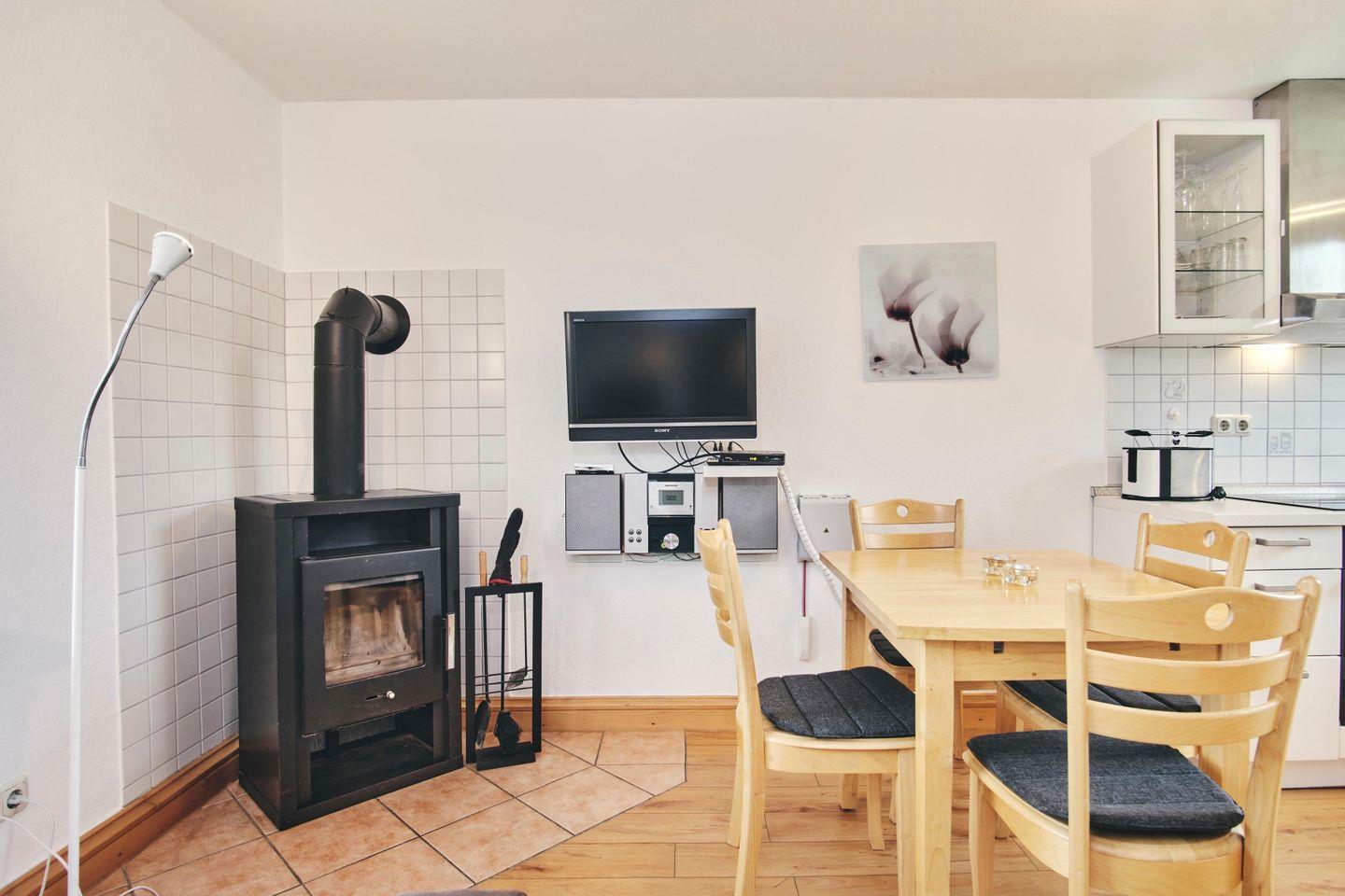 Das ebenerdige Domizil verfügt über 1 kombinierten Wohn- / Ess- und Schlafraum mit Kaminofen, 1 Einbauküche, 1 separaten Schlafraum, 1 Bad, 1 wunderschöne, überdachte Terrasse und einen ca. 420 m² großen, komplett eingezäunten Garten.