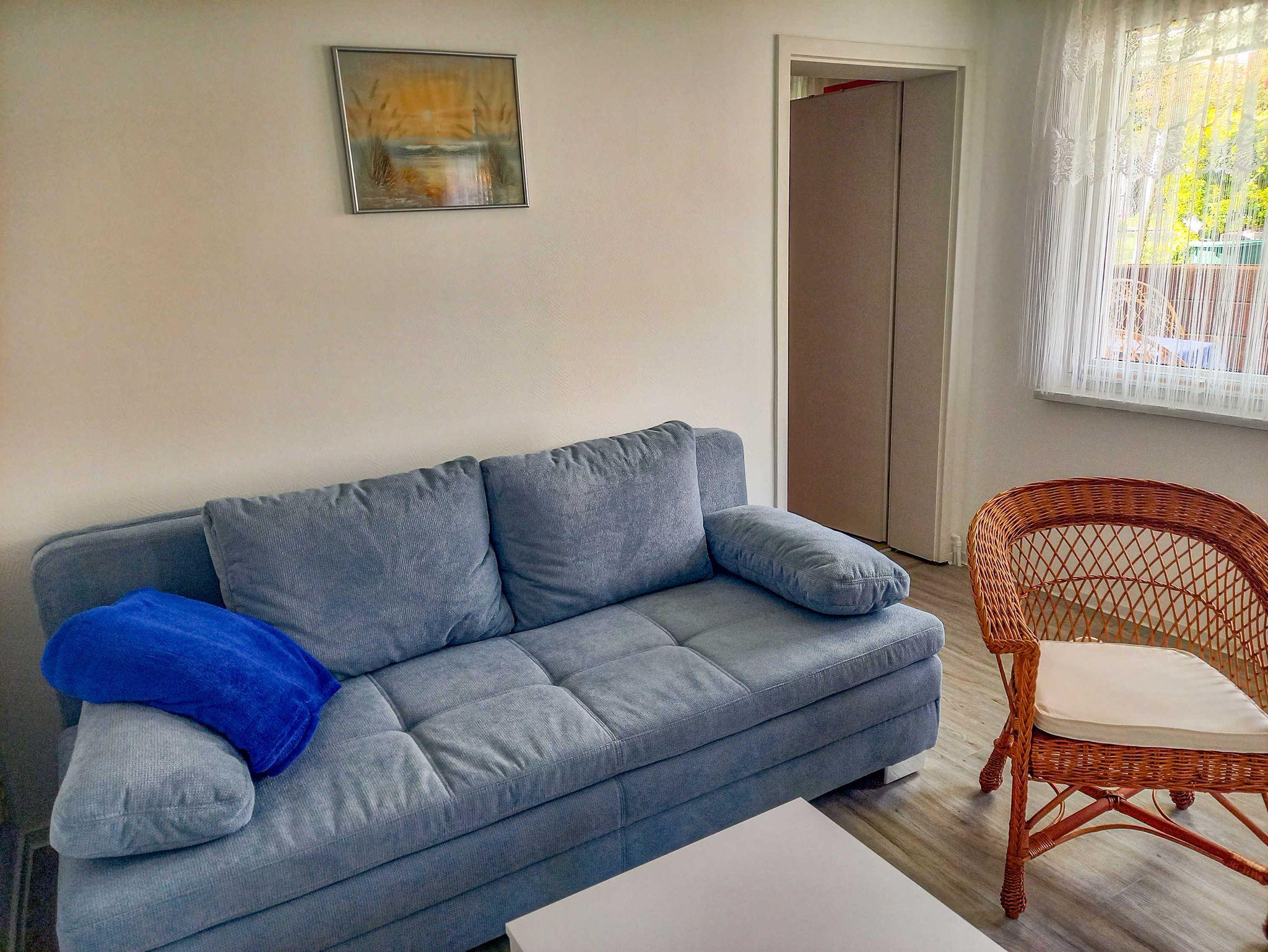 Der 38 m² große Bungalow für 3 Personen, mit eigener Terrasse, befindet sich auf dem Grundstück des Vermieters. Er besteht aus einem Wohnzimmer mit Schlafcouch (160x200) und Flachbild-TV, einem separaten Schlafzimmer mit 2 Einzelbetten (80x200; zusammenstellbar), einer Küche mit Ceranfeld, Kühlschrank, Geschirrspüler, Mikrowelle, Kaffeemaschine und Wasserkocher sowie einem Badezimmer mit Dusche,WC und Föhn.