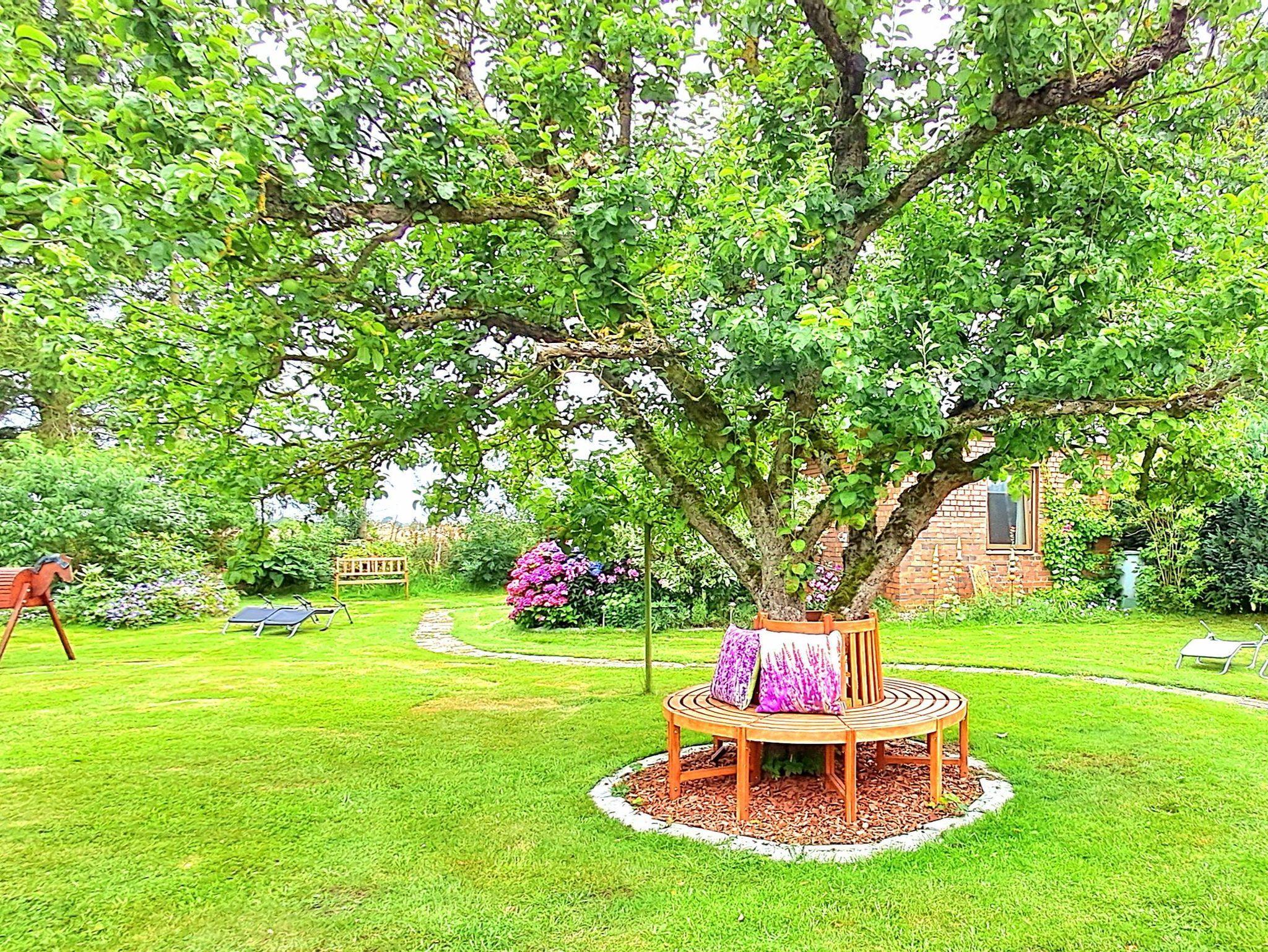 Auf dem Grundstück gibt es noch zwei Ferienbungalows - deshalb ist der weitläufige Garten nicht zur Alleinnutzung.
