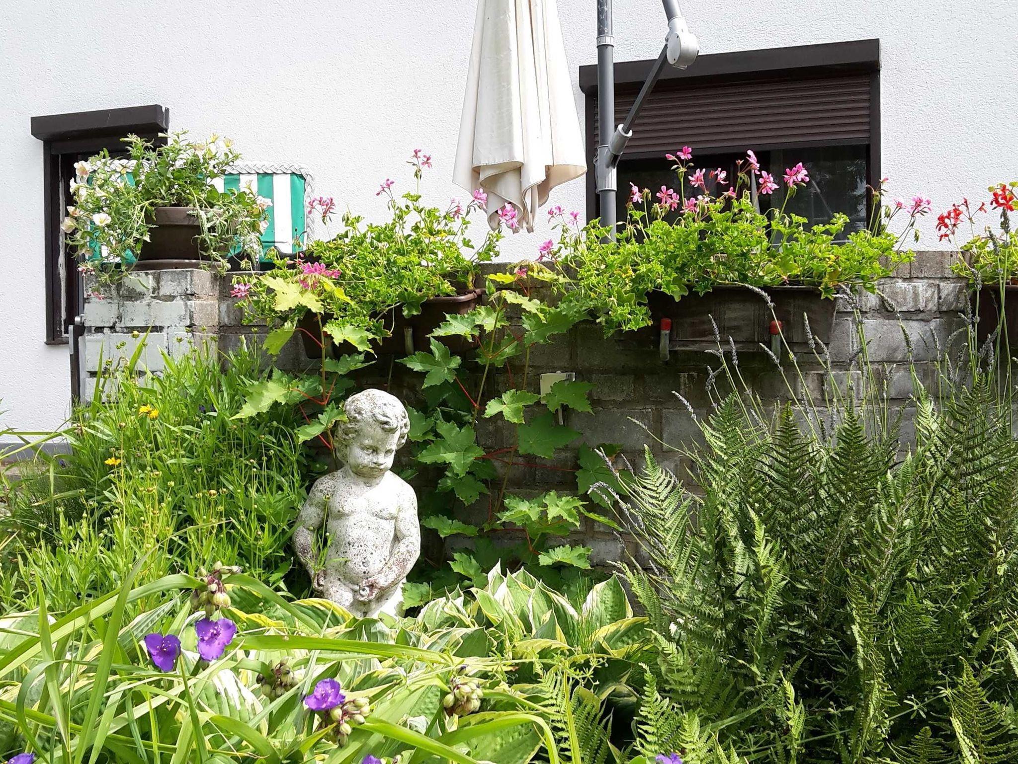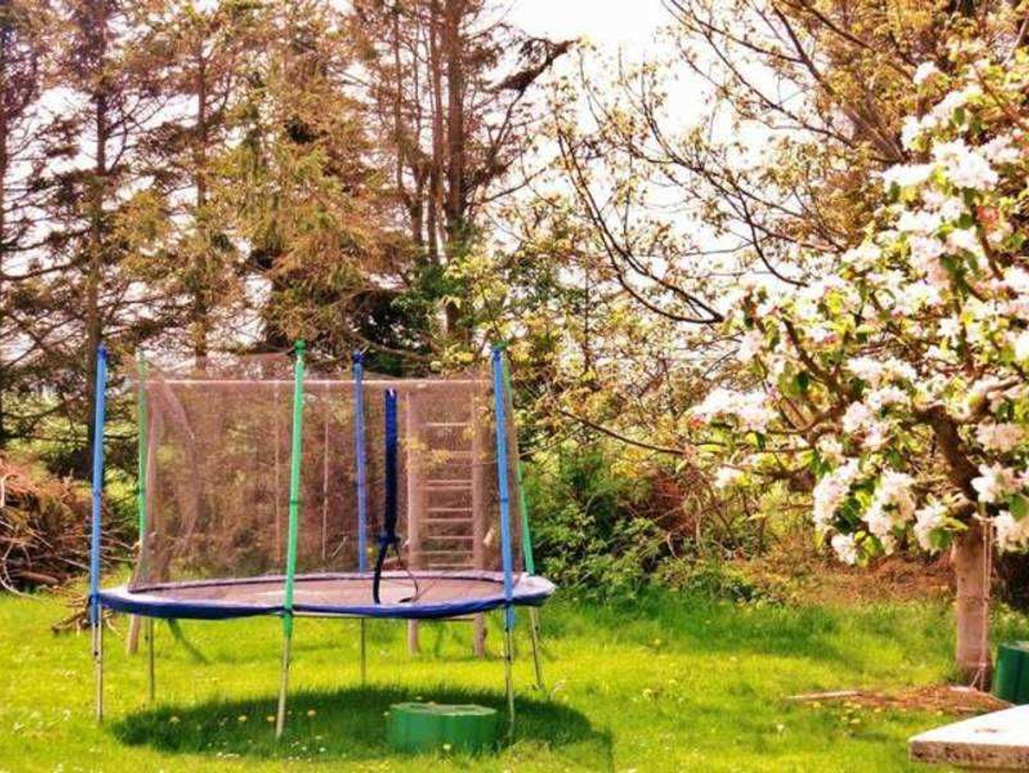 Großer Garten, Grill, Sitzecken, Gartenmöbel und Sonnenliegen, Kinderspielplatz mit Trampolin, Schaukeln und Sandkasten, Platz zum Fußballspielen und Toben.