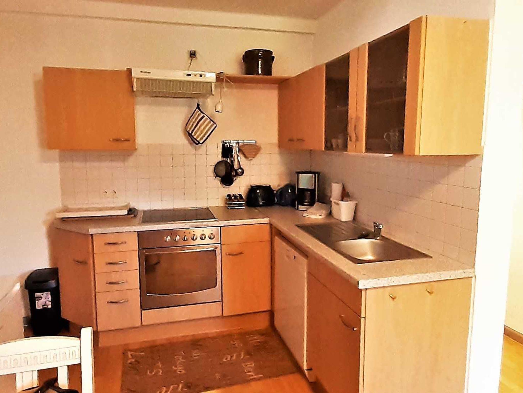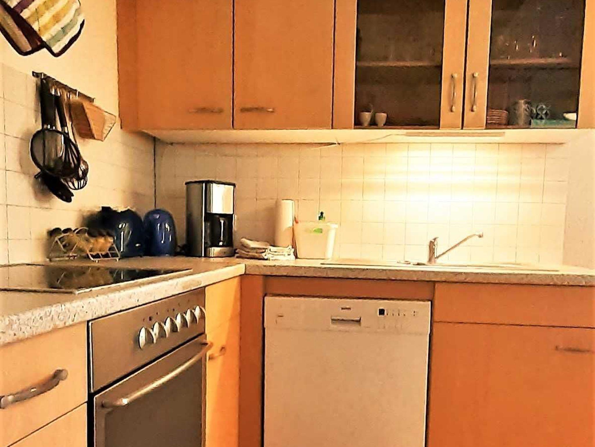 - Wohnbereich mit offener Küche: Einbauküche mit 4 Cerankochfeldern, Backofen und Geschirrspülmaschine, Kaffeemaschine, Eierkocher, Wasserkocher, Mikrowelle, Toaster, Kühlschrank mit Gefrierfach, Esstisch