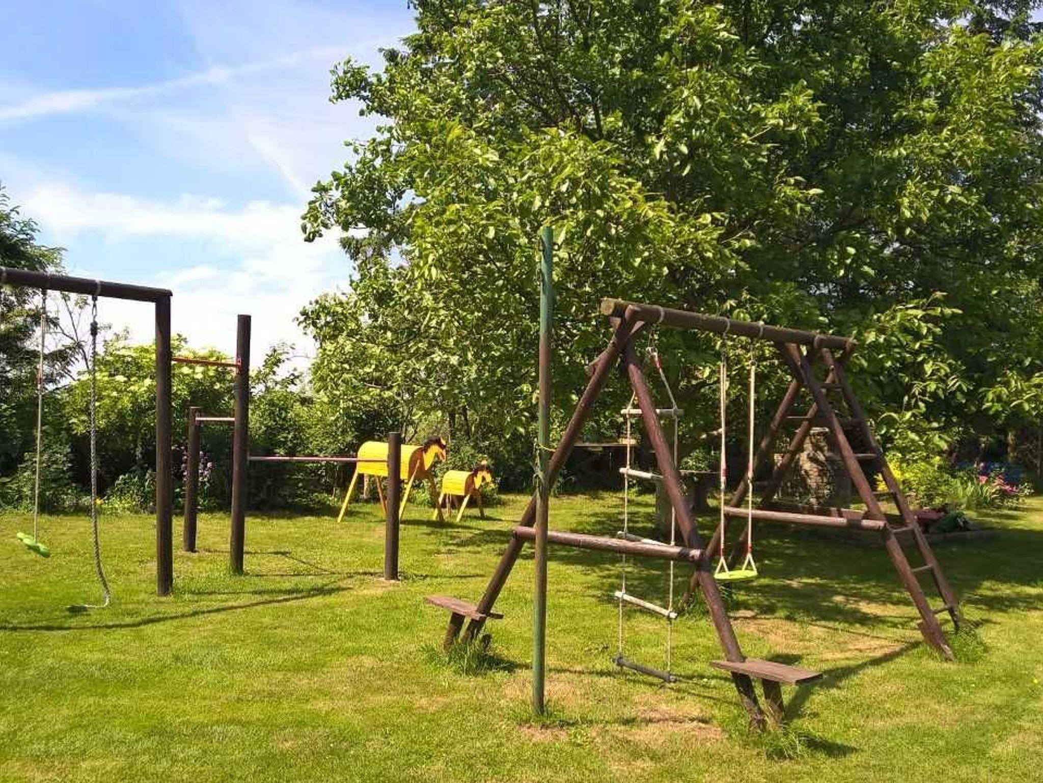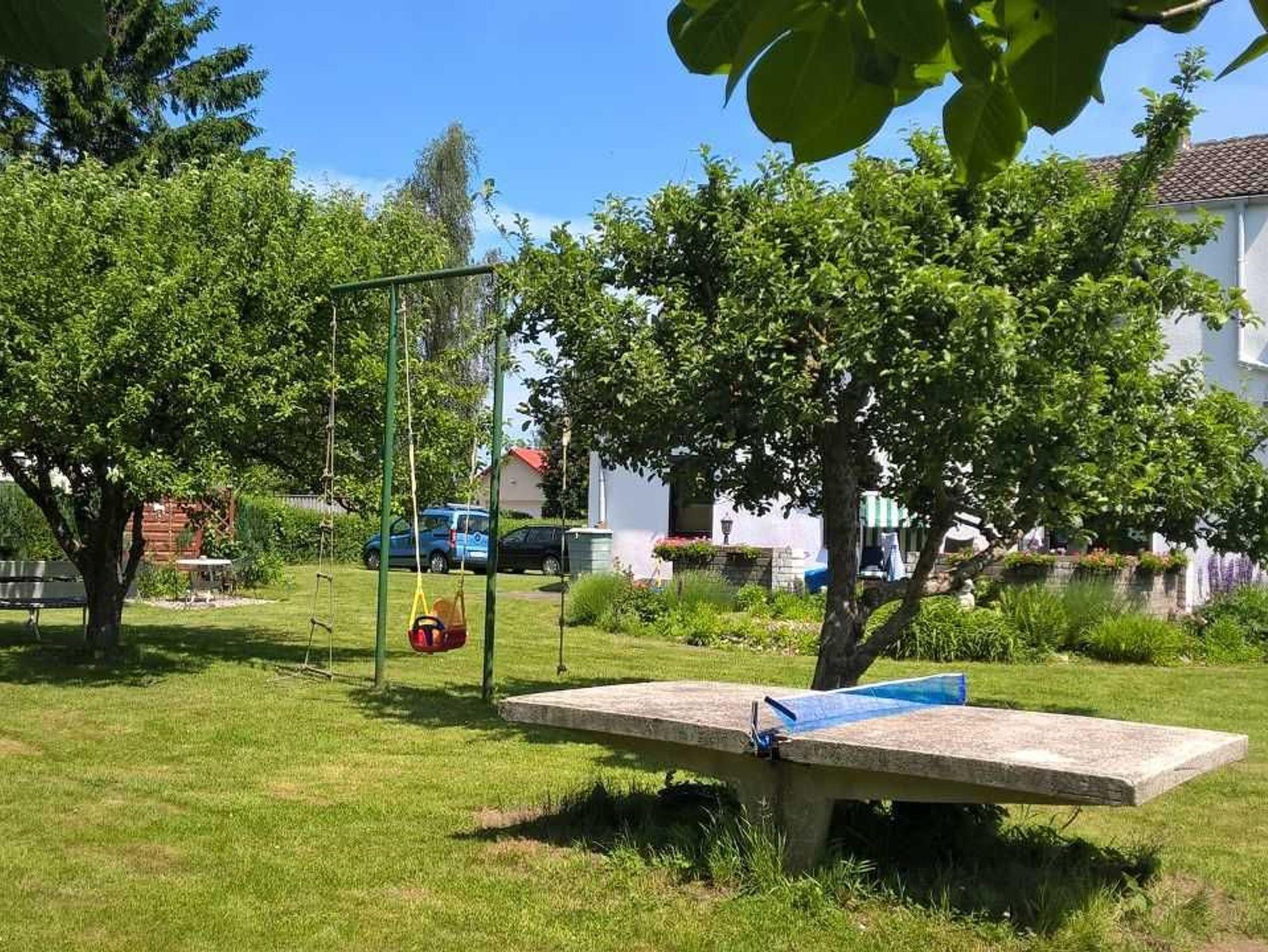 Eine Spielwiese im Garten lädt die großen Gäste zum Entspannen und die Kleinen zum Spielen und Toben ein. Es gibt eine Terrasse im Garten mit Sonnenschirm - hier kann gegrillt und unter Apfelbäumen gegessen werden. Für Kinder gibt es Schaukeln, Trampolin, Sandkasten, Fußballtor und eine Tischtennisplatte. Außerdem haben wir Hühner und Kaninchen.