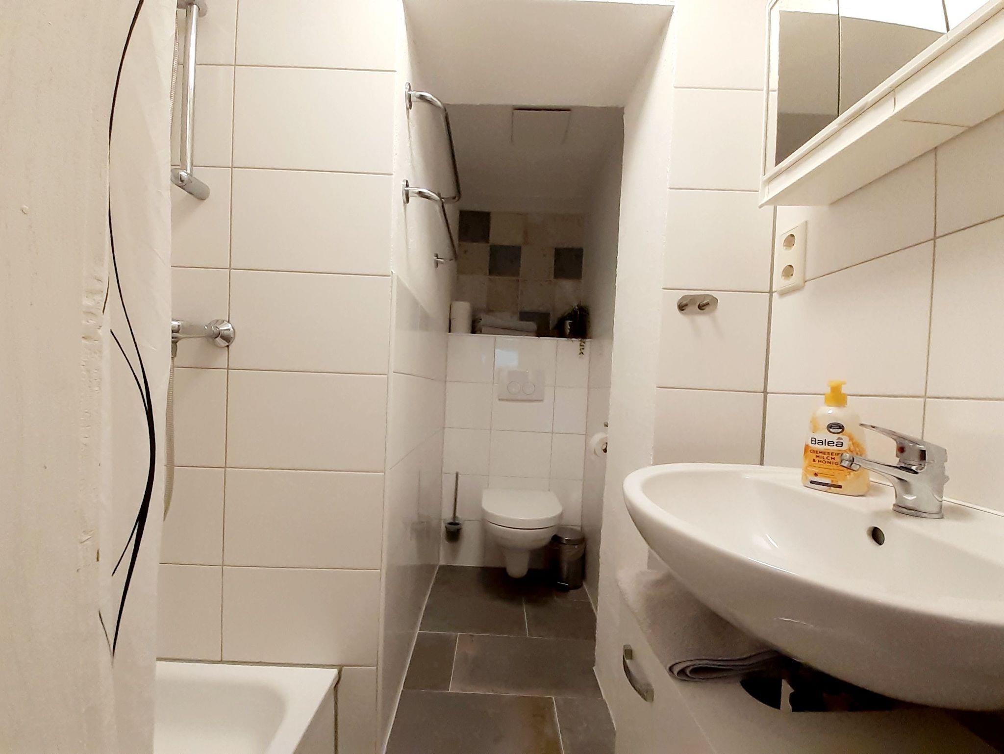 - Duschbad: innenliegend, gefliest, Dusche, Waschbecken und WC