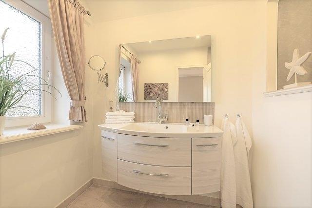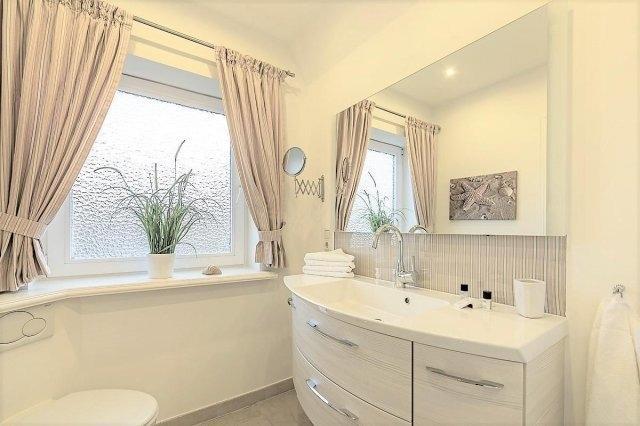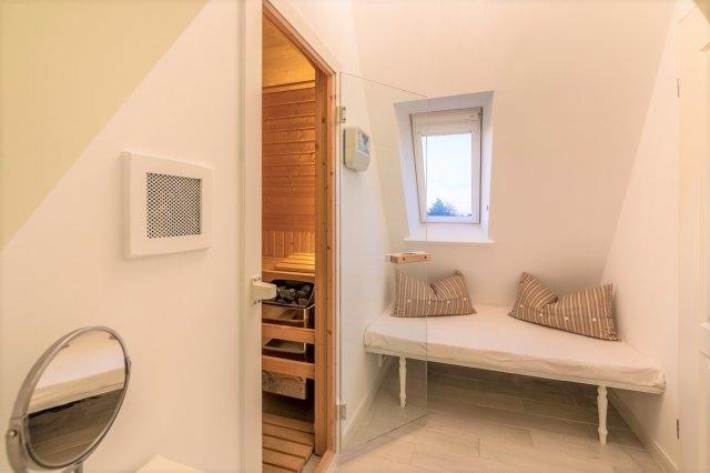 Ein Schlafzimmer mit (Doppelbett) hochwertigen Tischlereinbauten, Flat TV, Stereoanlage mit CD und Bad en suite (Dusche, WC, Waschtisch) befinden sich ebenfalls auf dieser Etage und versprechen gemütliche Träume. Die Küche mit allen Extras (Kühlschrank mit Null Grad Zone, Ceranfeld mit Induktion, Geschirrspüler, Backofen mit Grill..) lässt keine Wünsche offen. Im DG bietet Ihnen dieses Objekt die geräumige Sauna, wie ein Badezimmer mit Dusche, WC, Waschtisch und Whirlpoolbadewanne (Whirl/Air...) und ein weiteres Schlafzimmer wo man die Betten als 2 Einzelbetten aber auch als ein grosses Doppelbett nutzen kann. Selbstverständlich ist auch in diesem Schlafzimmer ein Flat TV mit DVD. Jedes Schlafzimmer verfügt zudem über Verdunkelungsrollos und die Schlafzimmer im DG haben zusätzliche Sonnenschutzrollos. Waschmaschine mit Trockner, Bügeleisen, Bügelbrett, und Staubsauger befinden sich in einen Einbauschrank im Flur damit es unseren Gästen wirklich an nichts fehlt
