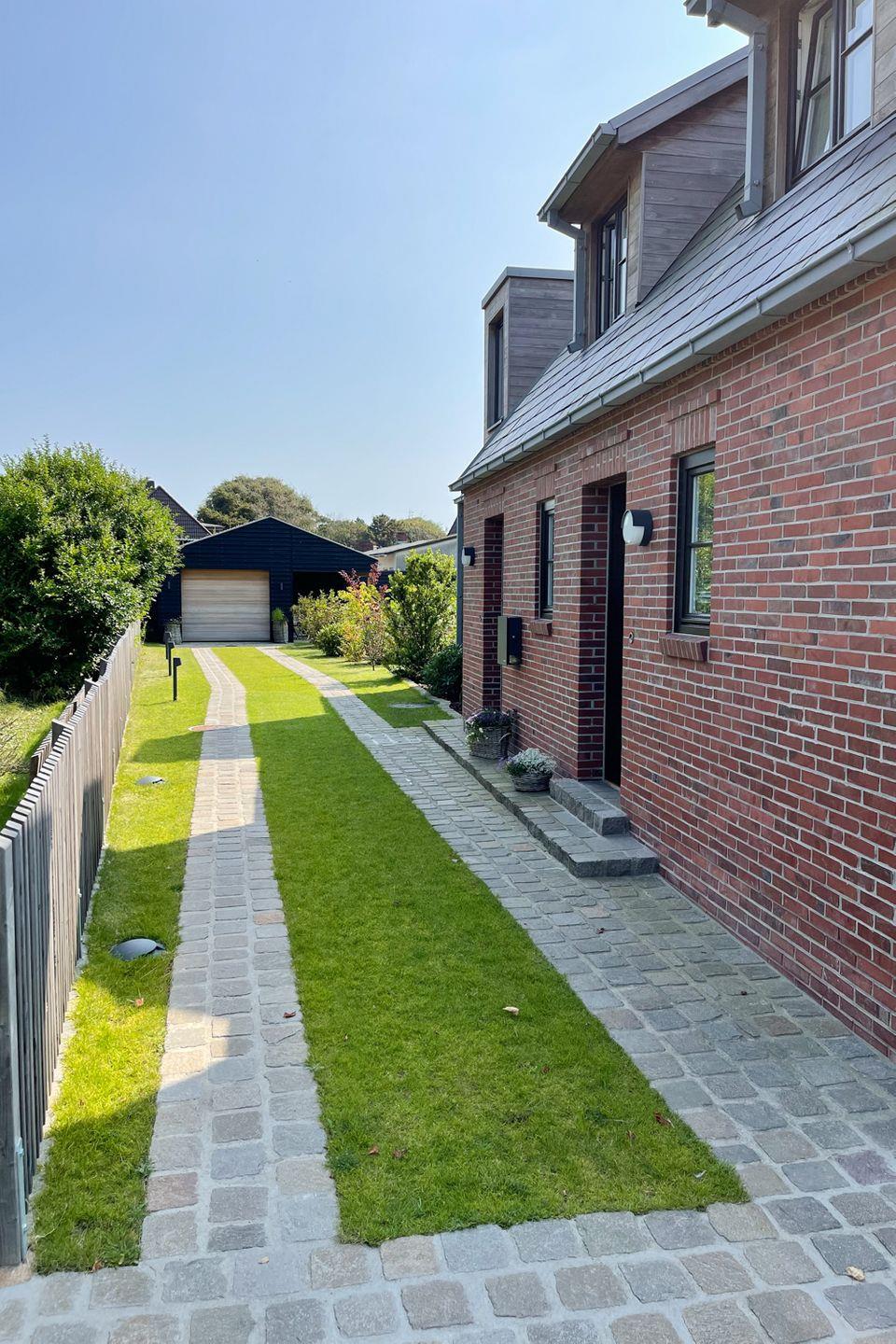 Der Außenbereich ist ebenso außergewöhnlich: Der Naturpool, ganzjährig nutzbar, verführt zu entspannten Stunden im Wasser, während Sie auf bequemen Liegen die Sonne genießen. Verweilen Sie auf der Terrasse mit stilvollen Gartenmöbeln, um die frische, salzige Meeresbrise zu spüren und den Tag zu genießen. Der Garten lässt sich bei Bedarf mit einem Mobilzaun umzäunen, sodass Sie noch mehr Privatsphäre genießen können. Die Garage steht den Gästen nicht zur Verfügung. Ihre Fahrräder können jedoch sicher und wettergeschützt unter dem Vordach der Garage abgestellt werden, während Ihr Auto bequem auf der Auffahrt parkt.