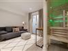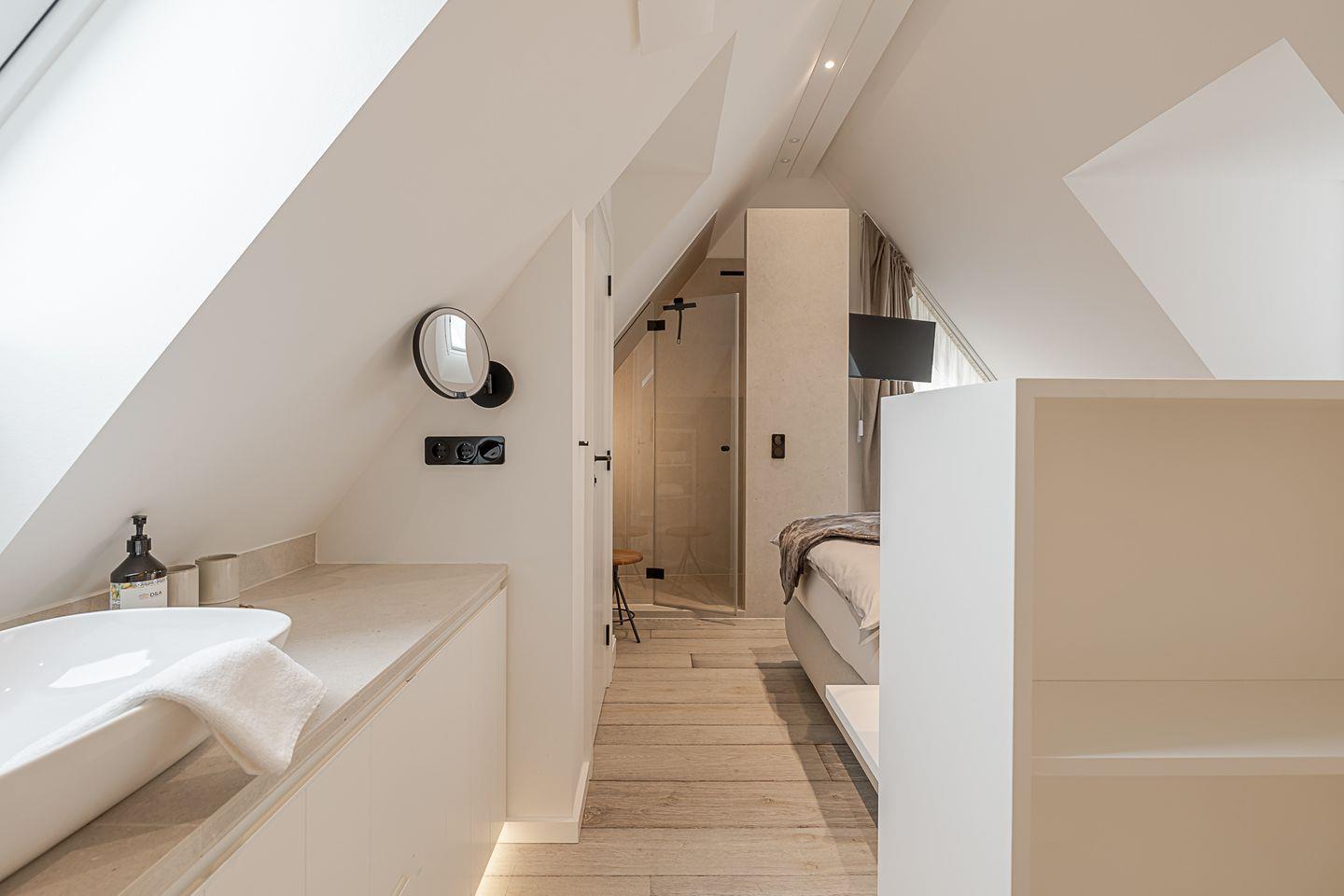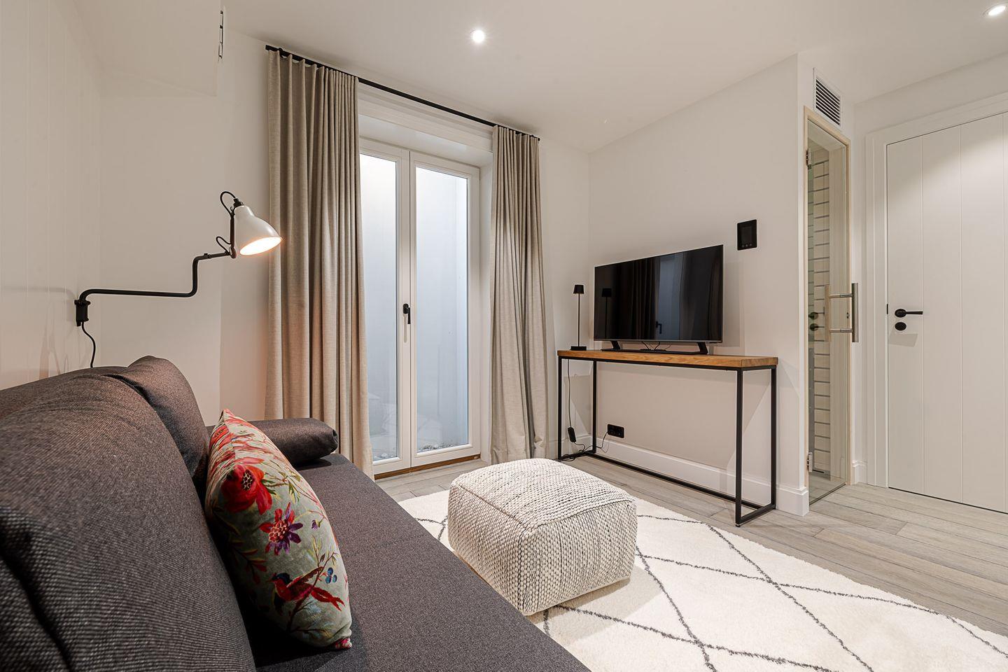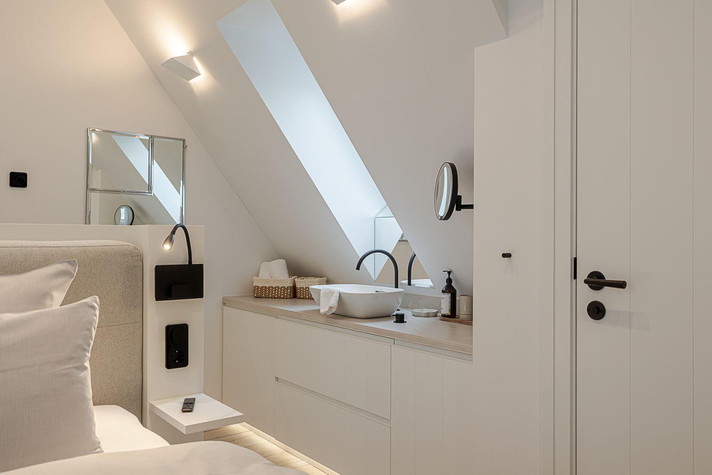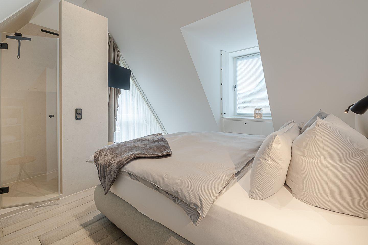 Im oberen Bereich des Hauses finden Sie zwei elegante Schlafzimmer. Das eine, mit einem großzügigen Boxspringbett (1,80 x 2,00 m) und einem luxuriösen Bad en Suite, bietet Ihnen absolute Privatsphäre und Komfort. Das andere Schlafzimmer, ebenso mit einem hochwertigen Boxspringbett (1,80 x 2,00 m), verwöhnt Sie mit einem Hauch von Exklusivität und ebenfalls einem eigenen TV. Im Souterrain erwartet Sie ein zusätzliches Schlafzimmer mit Schlafcouch – ideal für Gäste oder kleine Auszeiten. Hier befindet sich auch ein modernes Bad mit Dusche sowie eine private Sauna für die besonderen Momente der Entspannung.