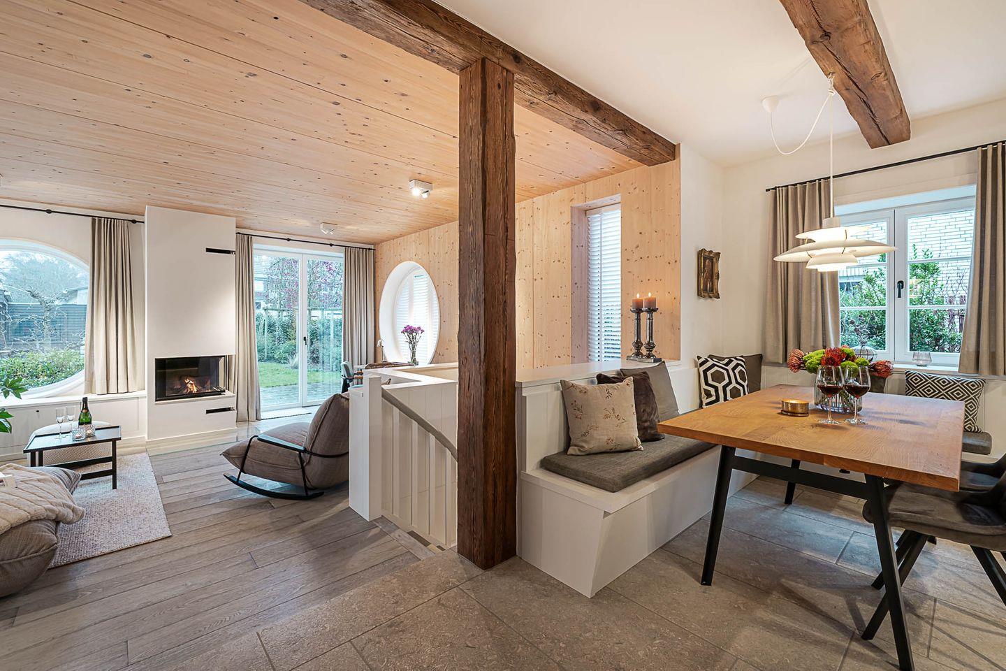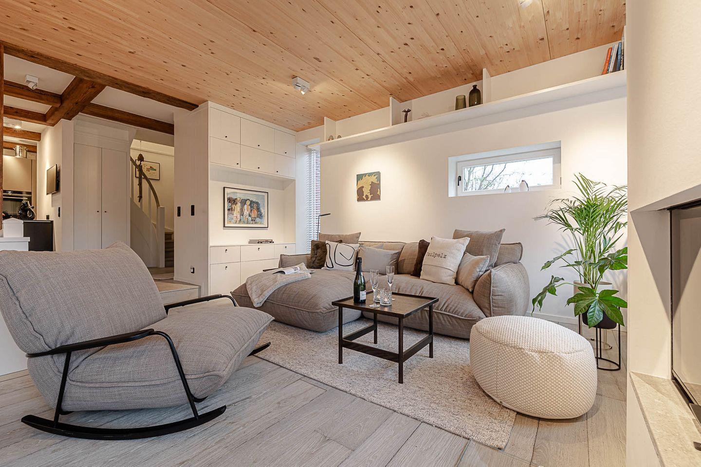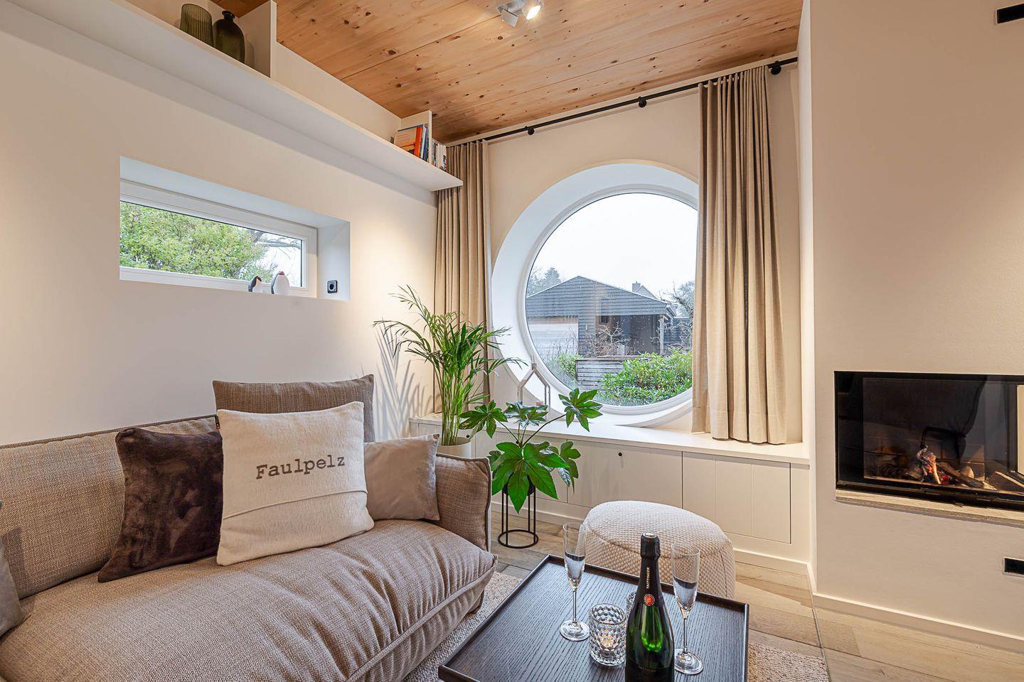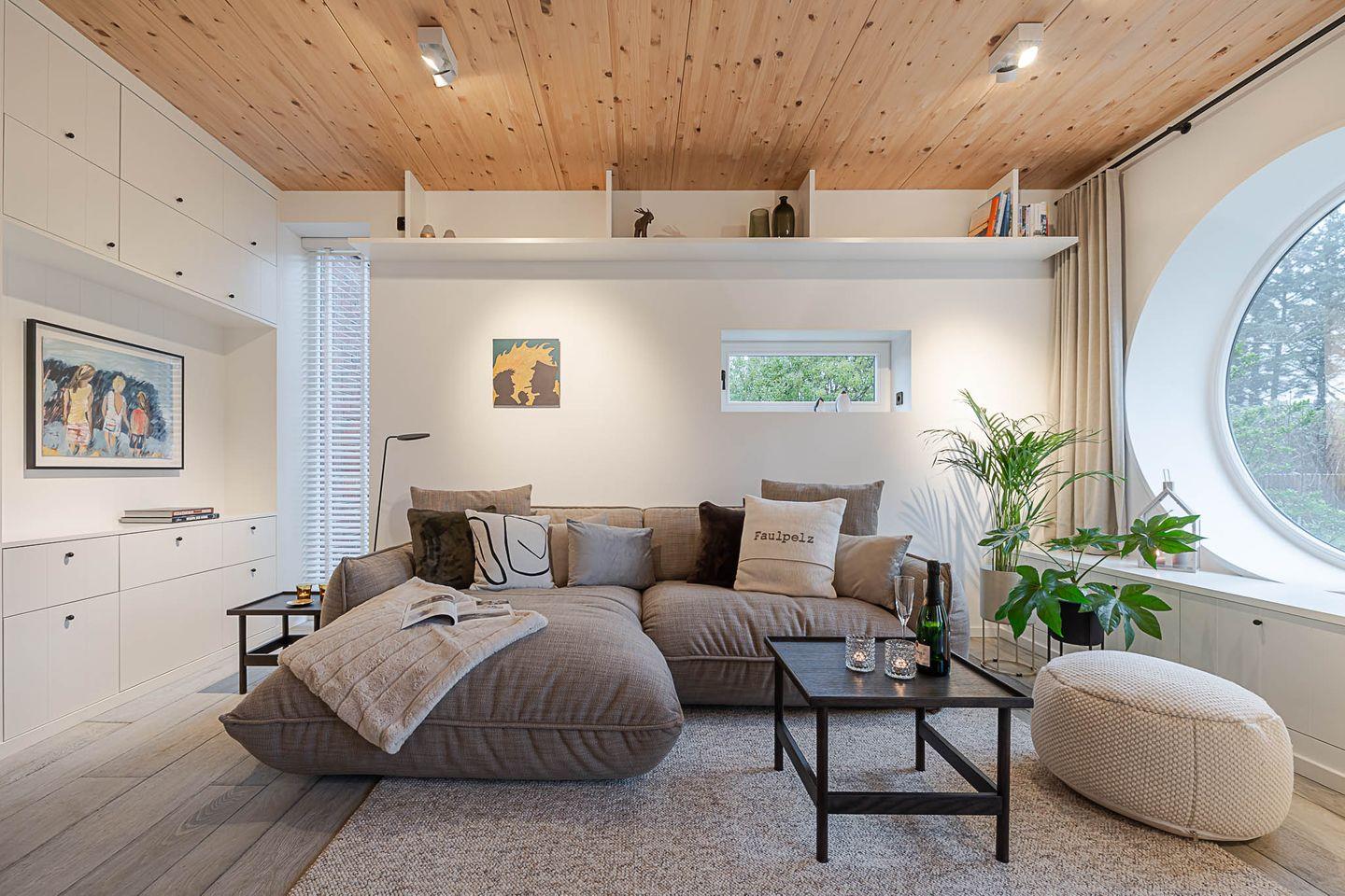 Das „Sylter Strandholz“ besticht durch klare, zeitlose Architektur und hochwertigste Materialien, die eine Atmosphäre der Leichtigkeit und Exklusivität schaffen. Die großzügigen, runden Fenster laden förmlich dazu ein, den Blick auf den liebevoll gepflegten Garten zu genießen und den Tag in harmonischem Licht zu erleben. Der offene Raumfluss im Inneren vermittelt eine unaufdringliche Weite und lässt jeden Moment in diesem Haus zu etwas Besonderem werden.