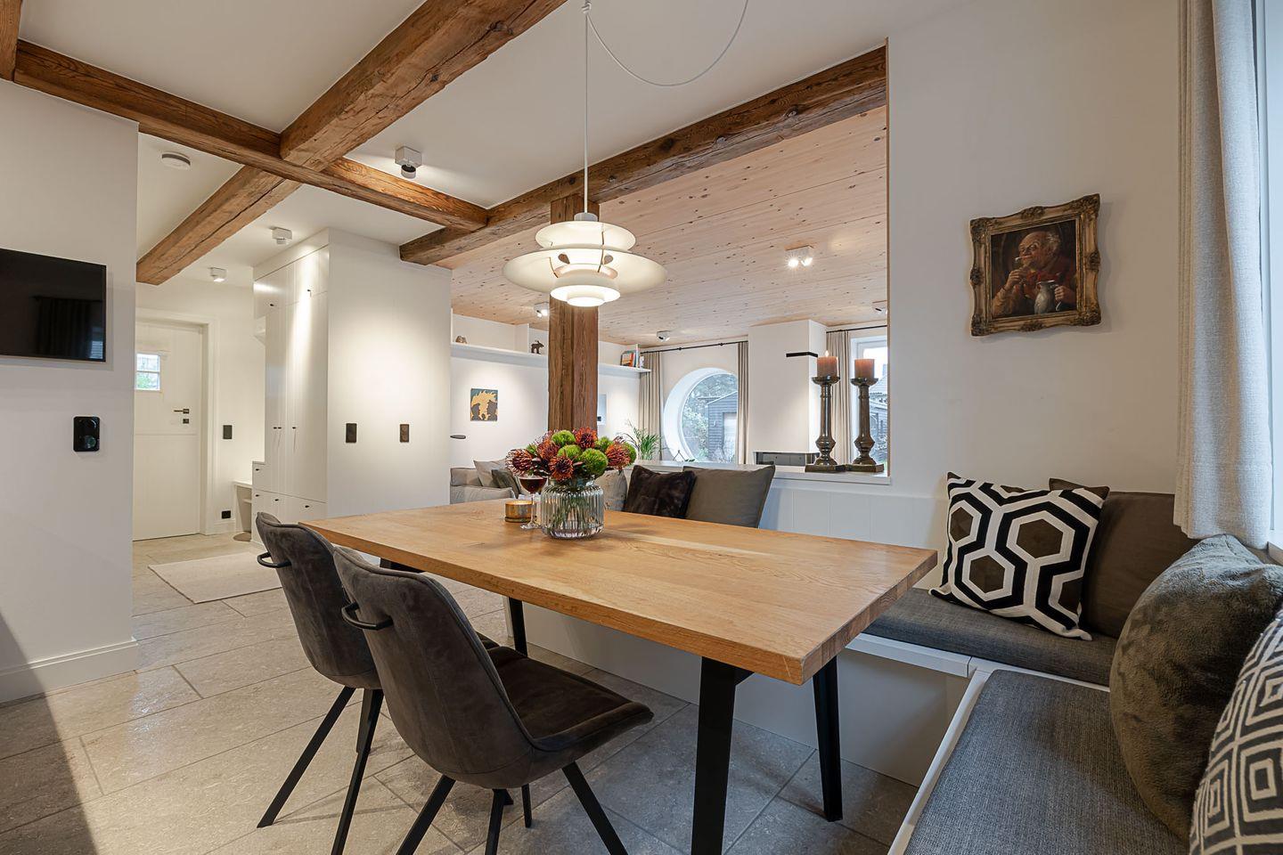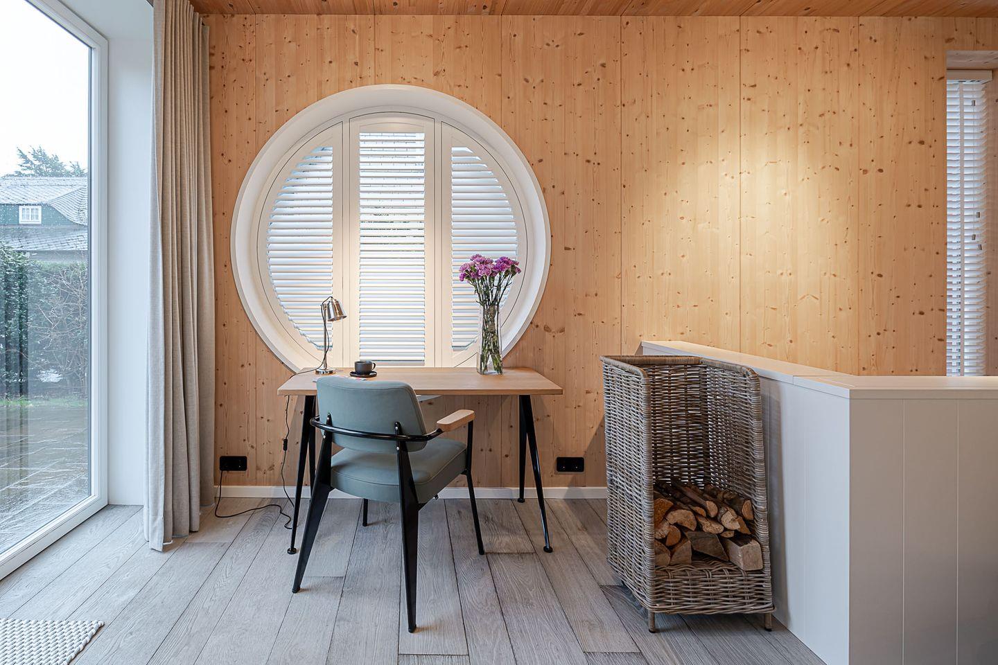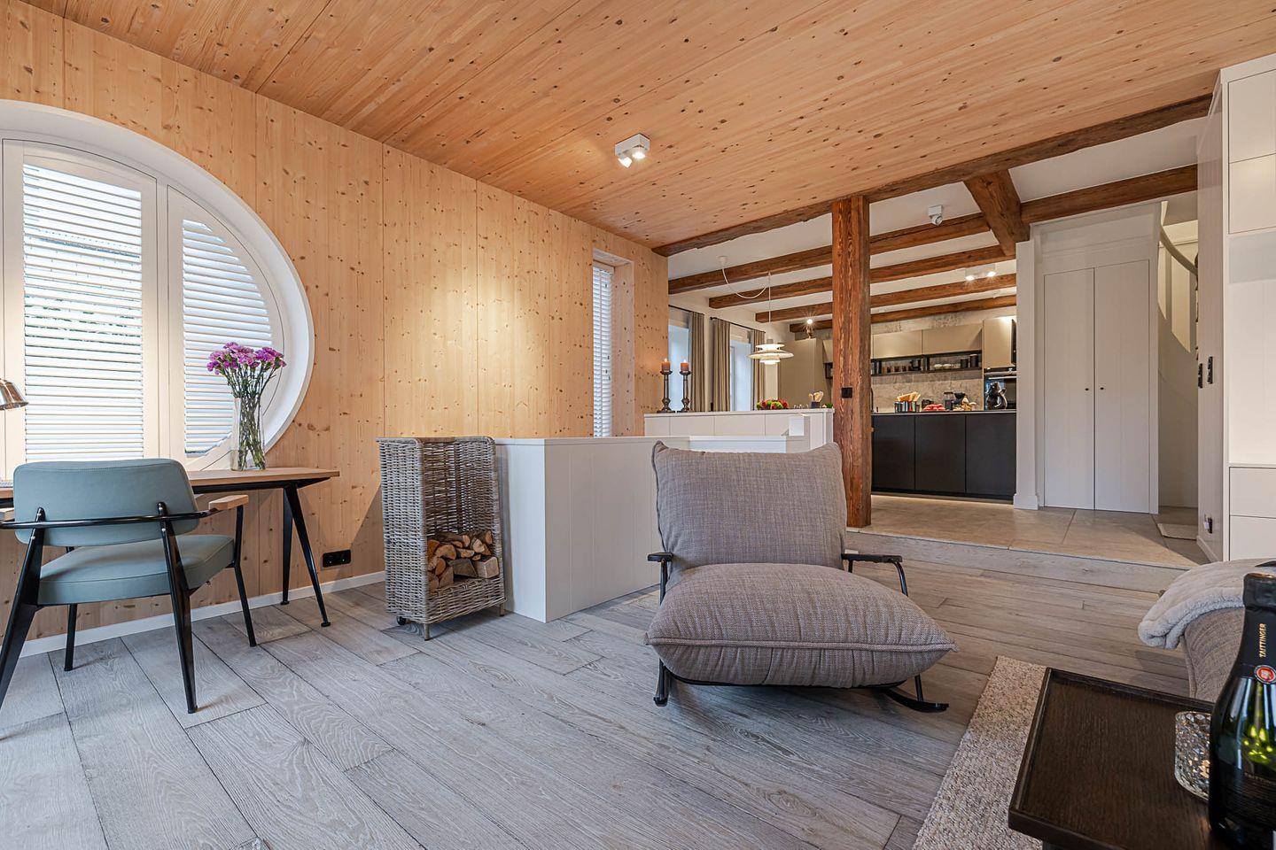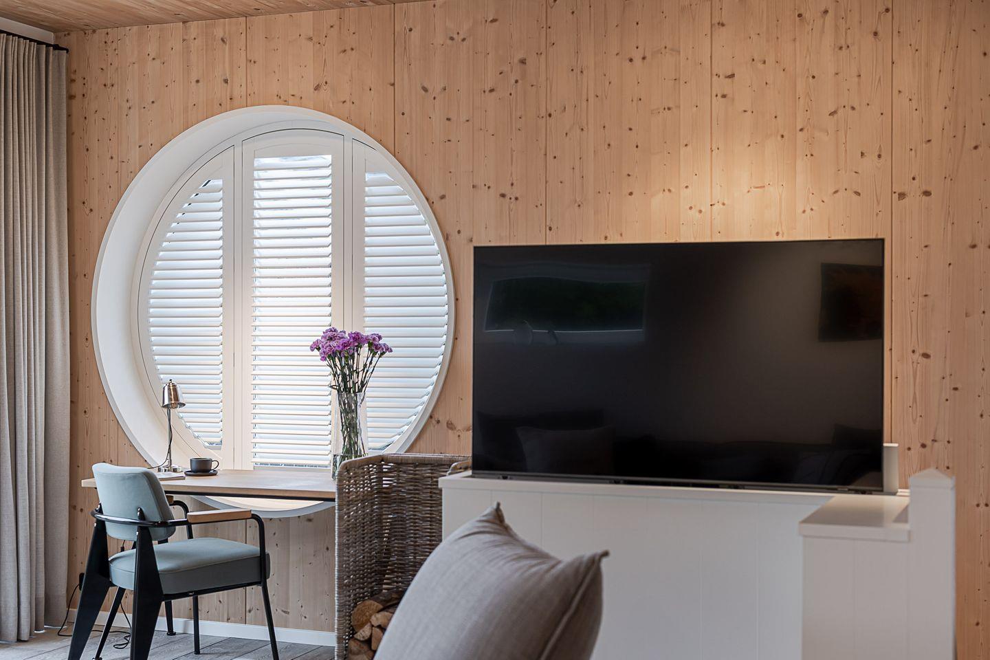 Das „Sylter Strandholz“ besticht durch klare, zeitlose Architektur und hochwertigste Materialien, die eine Atmosphäre der Leichtigkeit und Exklusivität schaffen. Die großzügigen, runden Fenster laden förmlich dazu ein, den Blick auf den liebevoll gepflegten Garten zu genießen und den Tag in harmonischem Licht zu erleben. Der offene Raumfluss im Inneren vermittelt eine unaufdringliche Weite und lässt jeden Moment in diesem Haus zu etwas Besonderem werden.