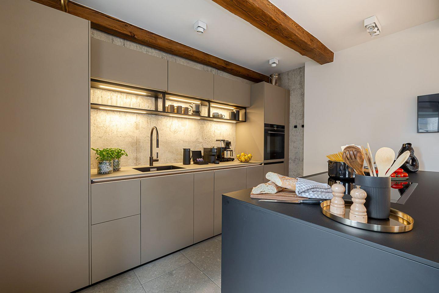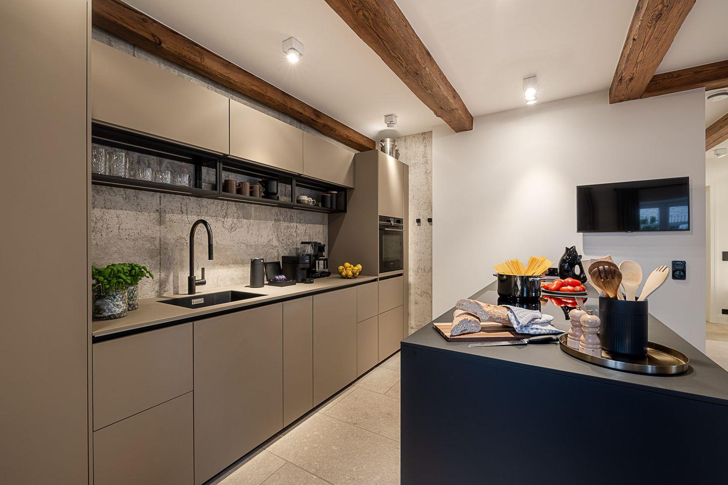 Im Erdgeschoss erwartet Sie ein lichtdurchfluteter Wohn-Essbereich, der mit einem stilvollen Holzkamin ausgestattet ist – perfekt für gemütliche Stunden, in denen die Zeit stillzustehen scheint. Hier können Sie entspannen und die wohlige Wärme genießen, während Sie den Tag ausklingen lassen. Die offene, hochmoderne Küche ist ein wahres Paradies für jeden Hobbykoch, ausgestattet mit besten Siemens-Geräten, darunter ein Backofen mit integrierter Mikrowelle, Induktionskochfeld, Geschirrspüler und ein Kühlschrank mit Gefrierfach – alles, was das Herz begehrt.