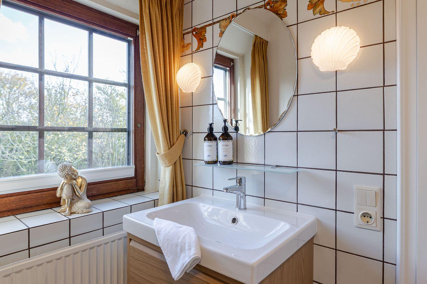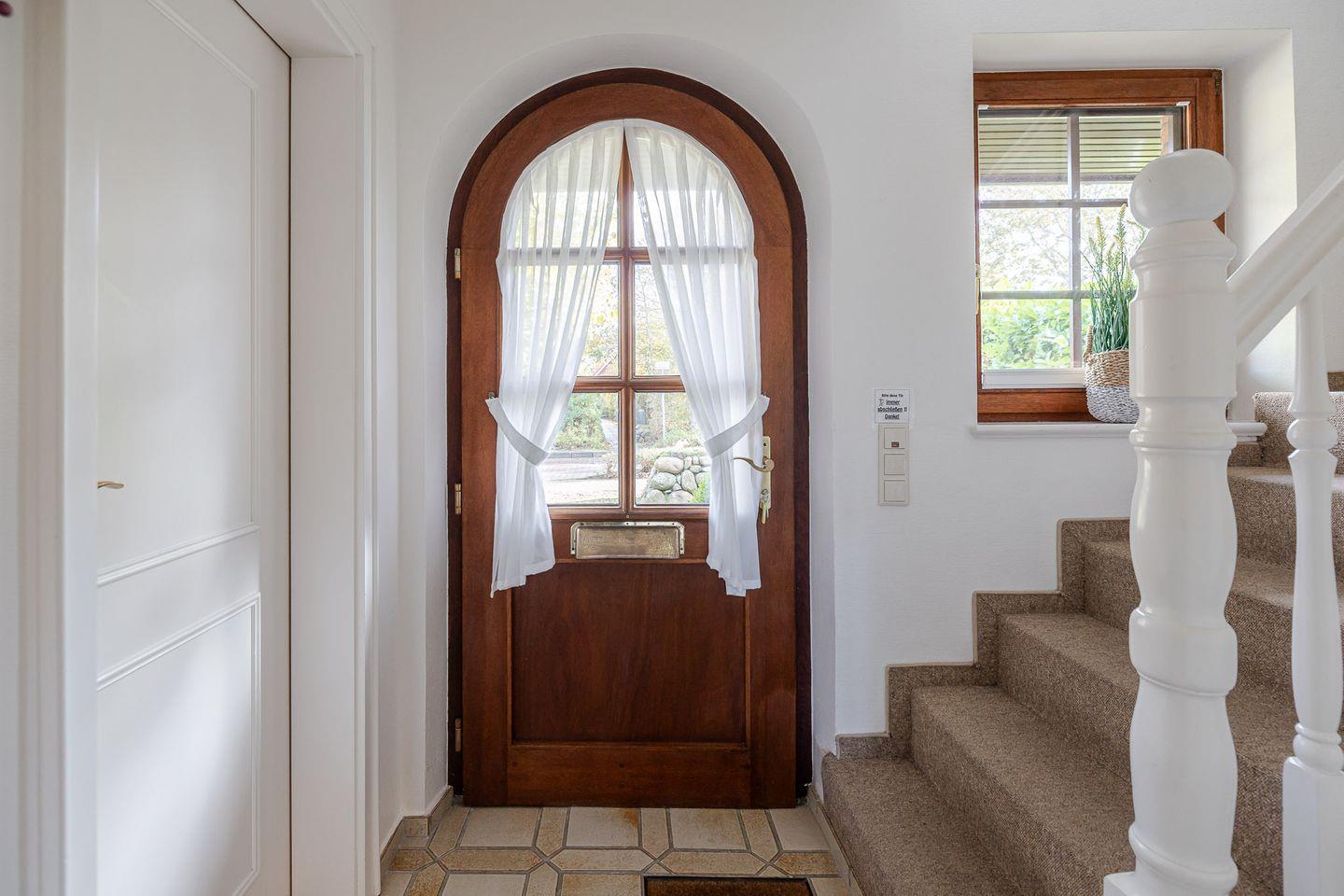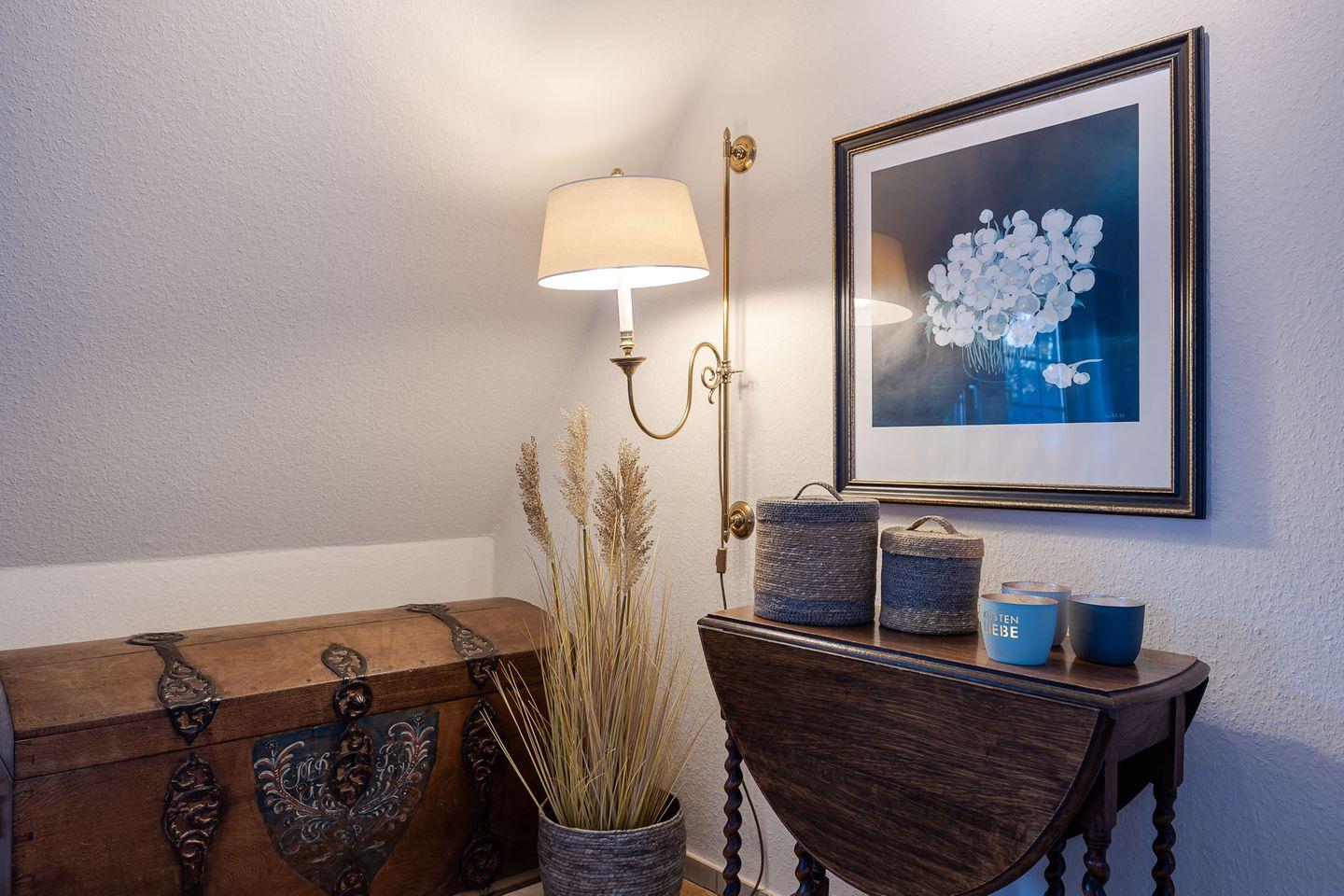 Schon im Erdgeschoss zeigt sich, warum dieses Haus den Namen „Friesenherz“ trägt. Der helle Wohn- und Küchenbereich öffnet sich direkt zur Terrasse und dem großzügigen Garten – ein grüner Rückzugsort, der im Sommer zum lebendigen Zentrum des Hauses wird. Frühstück zwischen Rosen, lange Nachmittage im eigenen Strandkorb, Grillabende mit Familie und Freunden oder ein Glas Wein in der Abendsonne: Dieser Außenbereich ist gemacht für Erinnerungen.