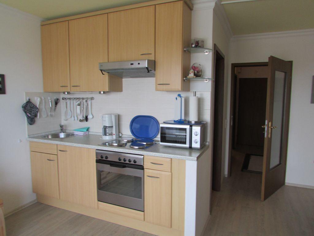 • Küchenzeile: Voll ausgestattet mit Kochfeld, Mikrowelle, Kühlschrank mit Gefrierfach