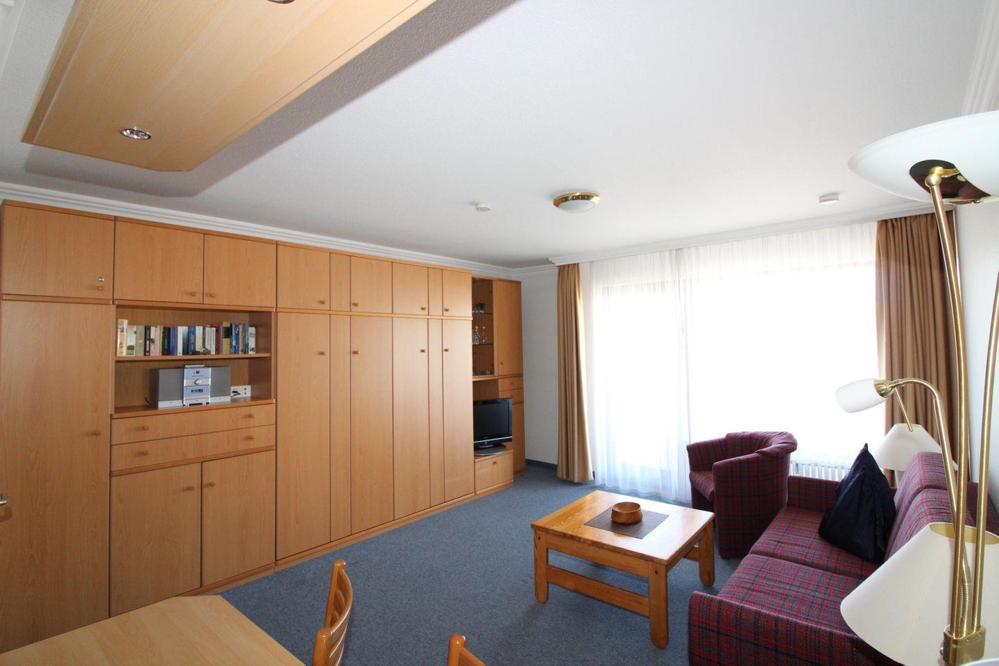 • Wohnzimmer: Doppel-Schrankbett, Sitzgruppe , Kabel-TV, HiFi-Anlage