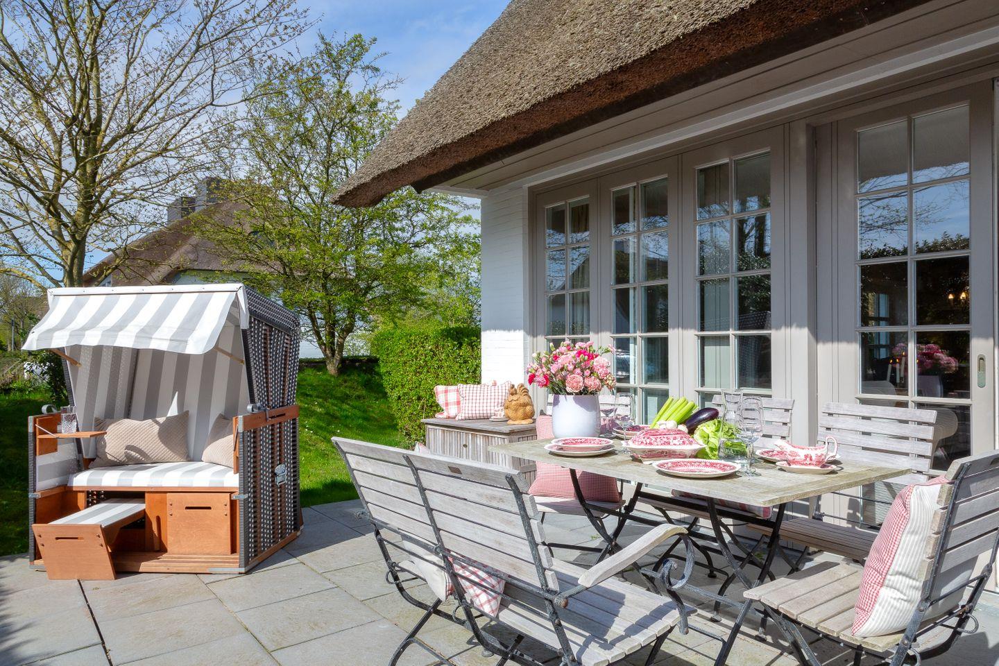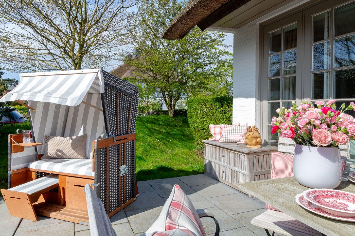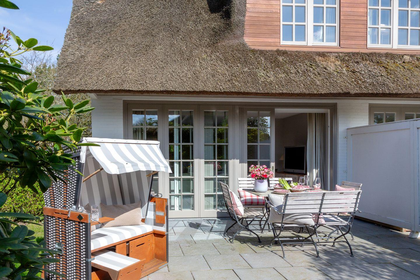 Großzügige Reetdachwohnung im idyllischen Kapitänsdorf Keitum mit Terrasse, Garten und Komfort für erholsame Tage auf Sylt.