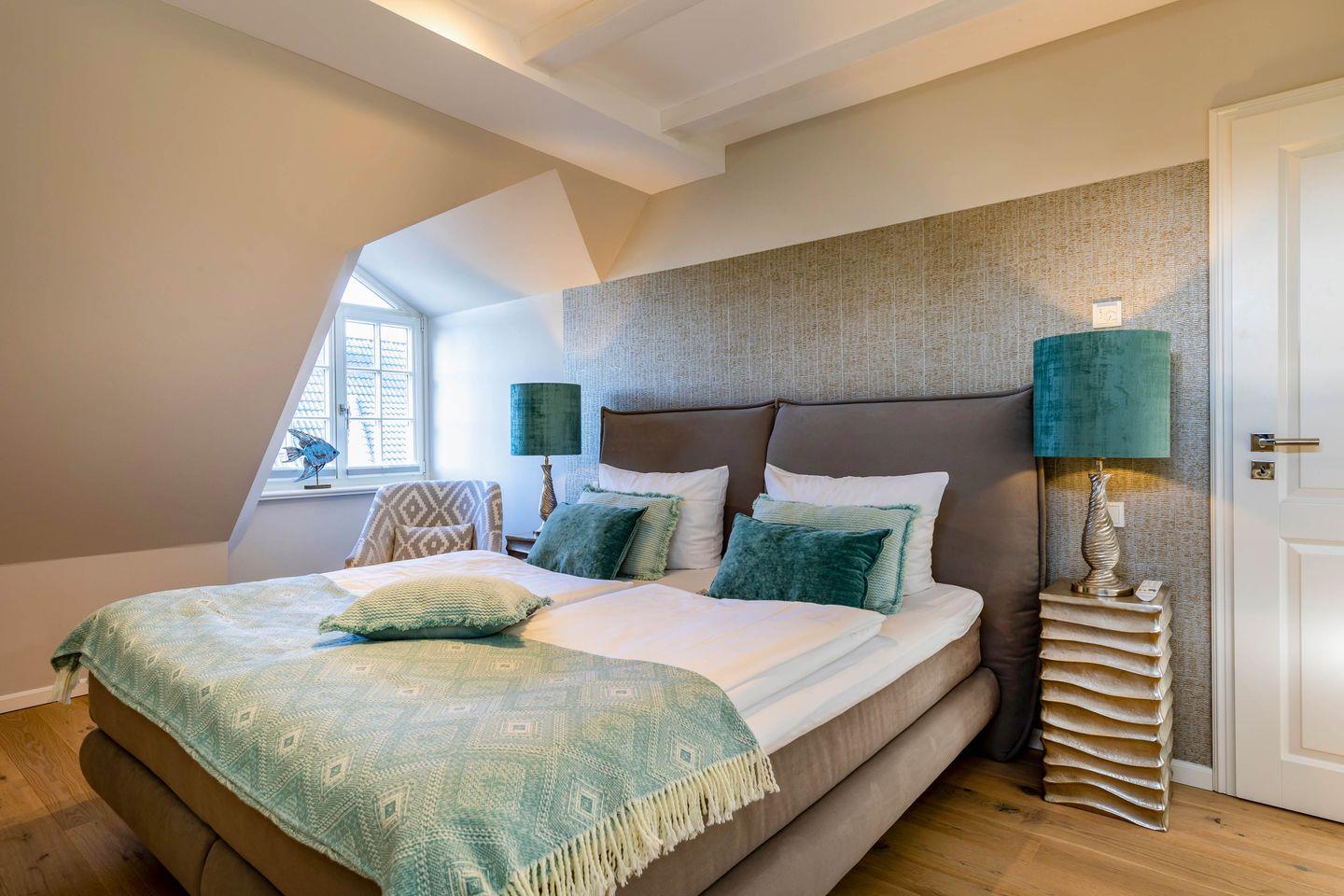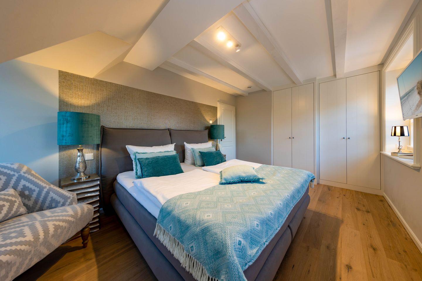 Moin und herzlich Willkommen im Ferienhaus „Sylter Liebe“, einem Neu erbauten wunderschönen exklusiven Anwesen mit Einzelhaus-Charakter am Rande des Dorfes Tinnum. Die Lage ist vielleicht eine der meist unterschätzten der Insel, Sie sollten also nach Ihrem Urlaub bitte nicht zur laut von der „Sylter Liebe“ schwärmen, damit es hier so beschaulich syltig bleibt, wie es ist: Hier, am Rande der weitläufigen Wiesen können sich bis zu sechs Personen zurückziehen und wirklich zur Ruhe kommen, mit einem schönen Garten, einer großzügigen Terrasse, ihrem eigenen Strandkorb und einem Haus, das sehr viel Charme hat und nicht nur mit einem Kamin, sondern mit wirklich allem ausgestattet ist, was auch das anspruchsvollere Urlauberherz begehrt. Sogar ein Wäschetrockner, ein Tresor sowie ein Bügeleisen finden sich. Zwei Einzelbetten und zwei Doppelbetten, zwei Bäder und eine edle offene Küche – das Ferienhaus ist hell und mit viel Liebe zum Detail eingerichtet, frisches Türkis setzt sparsame Akzente zu edlem Greige und den nordischen Holzdielen. Manchmal hört man hier in der Ferne noch ein Pferd wiehern, der Deich vom Watt ist nicht weit, das offene Meer und die „Oase zur Sonne“ keine zwei Kilometer entfernt. Hier „in den Wiesen“ und in der „Sylter Liebe“ sind Inselferien wirklich etwas sehr Besonderes, nicht nur für Individualisten.