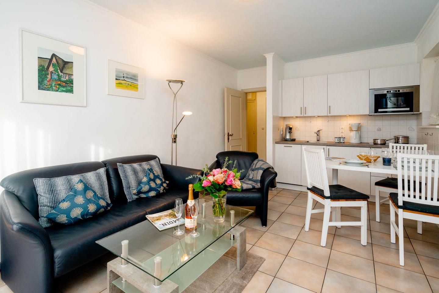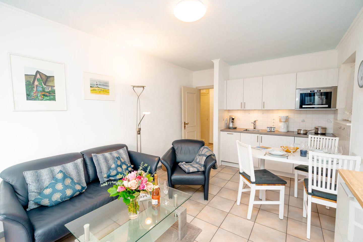 Moin Moin und Willkommen im 2-Zimmer-Ferienappartement "Söder." Die Wohnung liegt ebenerdig und ist nicht weit entfernt vom Wenningstedter Strand, auch Gosch-Fans müssen nicht weit laufen, bis sie am futuristischen Fischtempel bei der "Kante" sind, wie die Wenningstedter das Kliff hier nennen. Die Wohnung verfügt über eine eingewachsene Südterrasse, ein eigener Parkplatz gehört auch dazu.