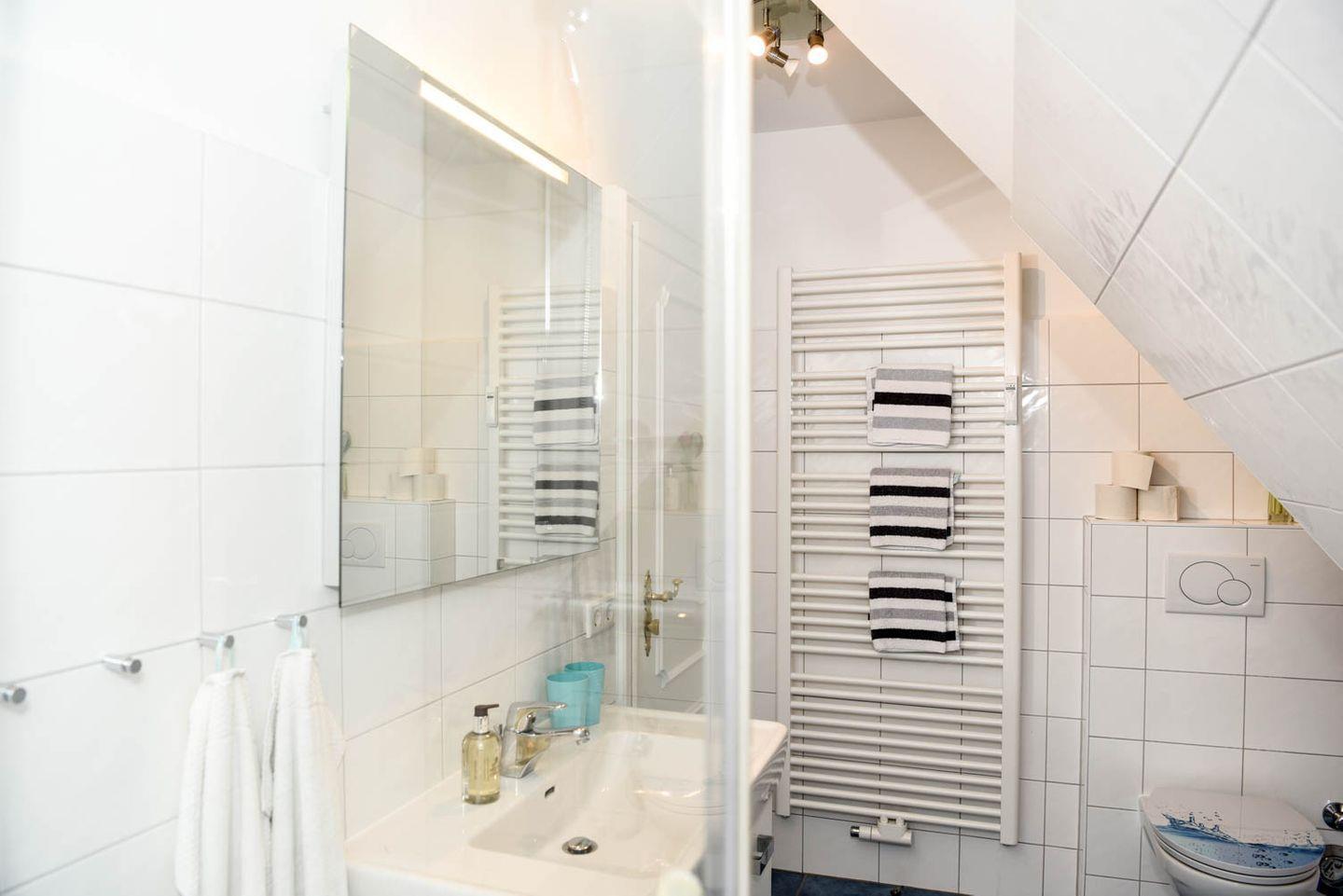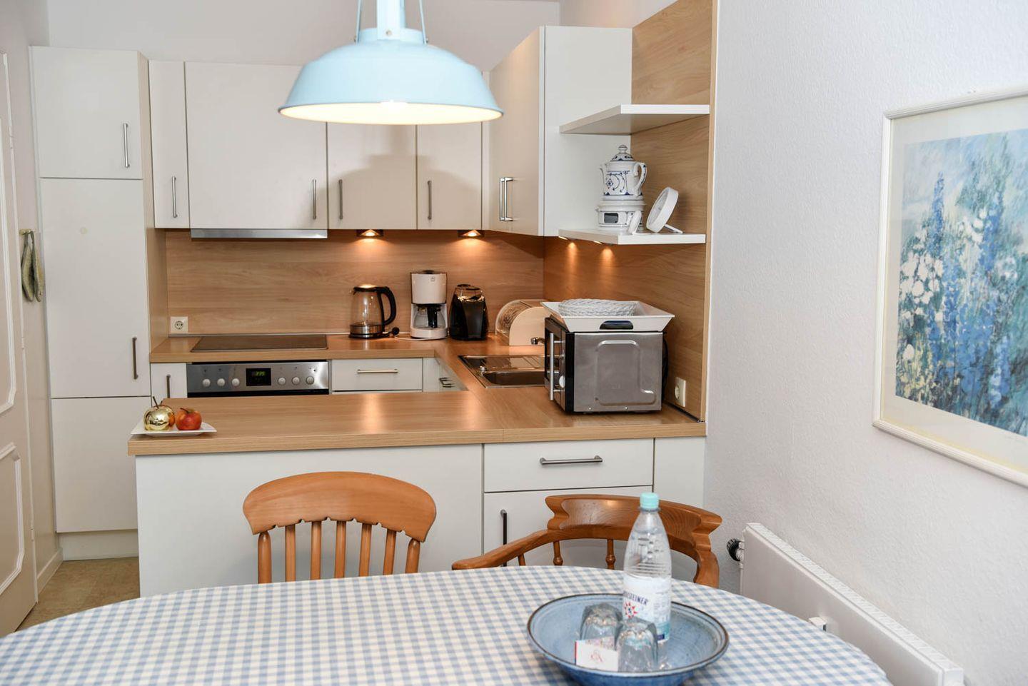 Moin Moin und Willkommen in der charmanten 3-Zimmer-Ferienwohnung "Carina". Dieses in frischem Friesisch-Weiß-Blau gehaltene Maisonette-Domizil hat einen großzügigen Wohn-, Koch- und Essbereich und vor Kurzem eine neue Einbauküche erhalten. "Carina " erstreckt sich über zwei Ebenen und liegt im ersten Stock eines Hauses, ein möblierter Südbalkon gehört dazu, die Straße ist ruhig, der Strand von hier aus nicht weit entfernt.