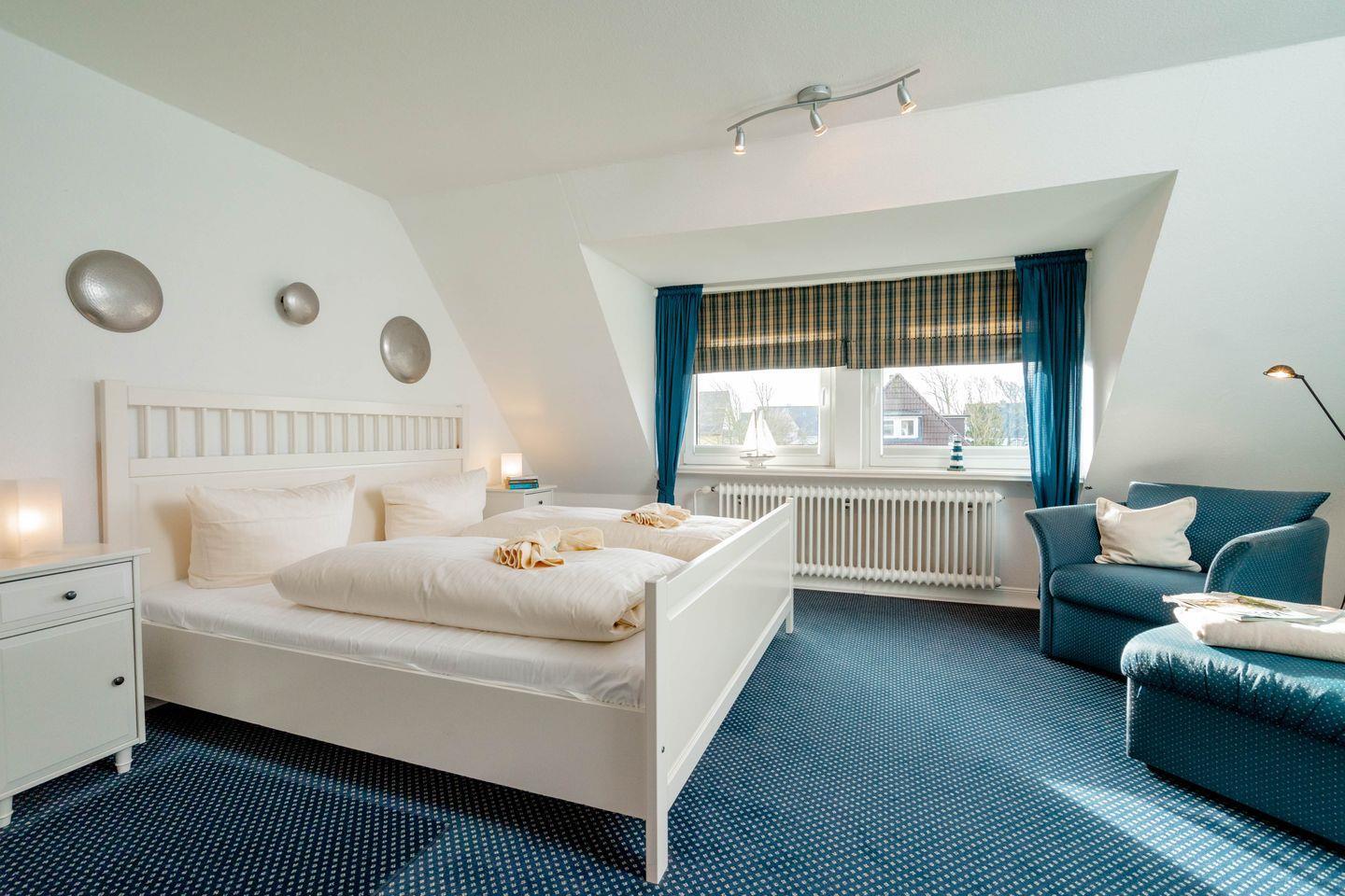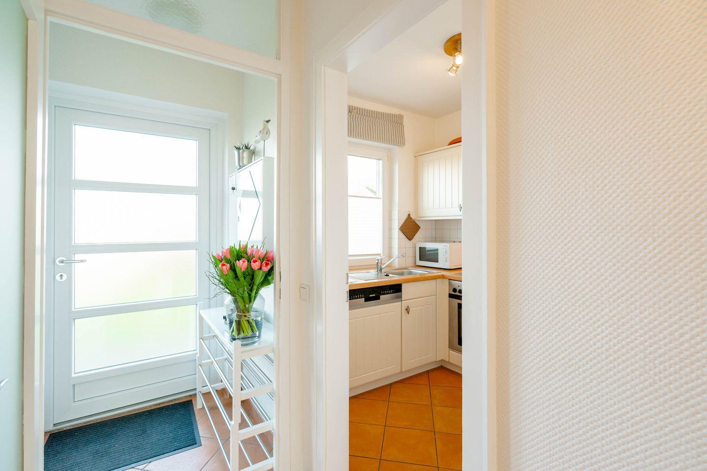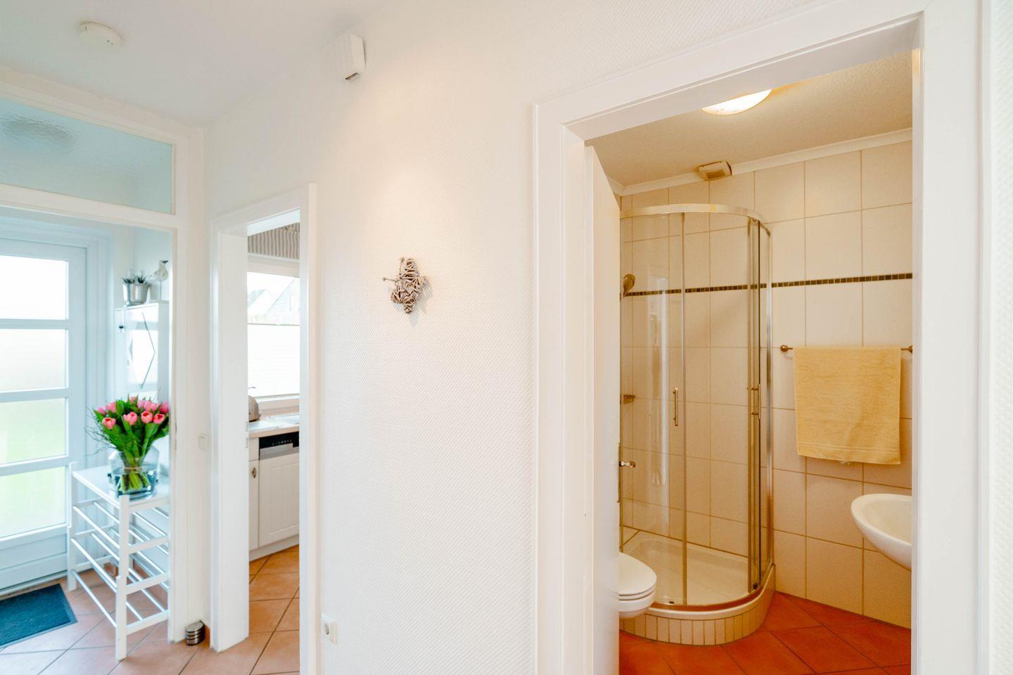 Moin, moin und herzlich Willkommen im Ferienhausteil „Stranddiestel“, zentral und doch ruhig gelegen im familienfreundlichen Wenningstedt. Bäcker Jessen, Feinkost Meyer, Gosch am Kliff und natürlich der Strand - alles ist von hier aus in wenigen Minuten zu Fuß zu erreichen. Die gemütliche Wohnung, genaugenommen ist es ein reelles Hausdrittel, erstreckt sich über zwei Ebenen und passt perfekt für vier Personen: Sie bietet zwei Schlafzimmer, mit einem Doppel- und zwei Einzelbetten sowie zwei Duschbäder. Im Obergeschoss dominieren Weiß und maritime Blau, im Wohnbereich warmes Terrakotta. Die Ausstattung des Hausteils ist selbstverständlich komplett, von der Waschmaschine bis zum Wlan, ein eigener Außenparkplatz und eine eingewachsene Südterrasse mit Strandkorb gehören auch noch dazu. Übrigens: Im Winter lockt die „Stranddiestel“ sogar mit Spezialangeboten!