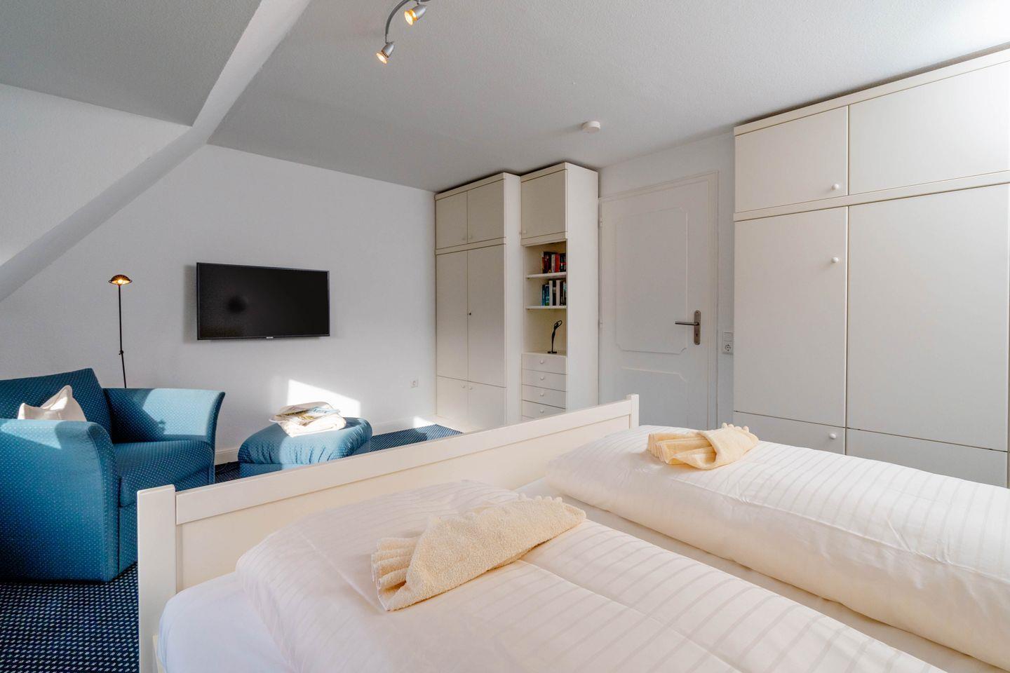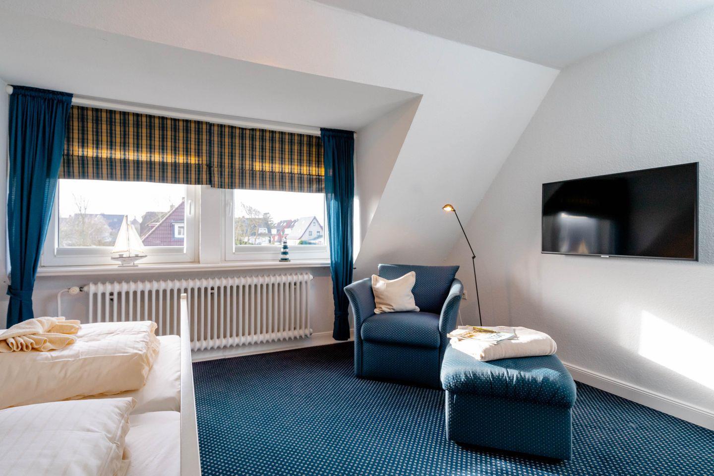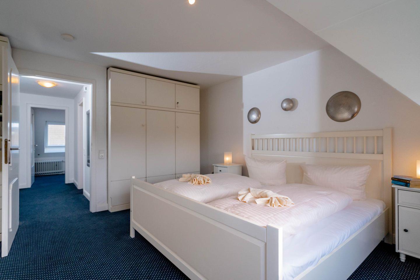 Moin, moin und herzlich Willkommen im Ferienhausteil „Stranddiestel“, zentral und doch ruhig gelegen im familienfreundlichen Wenningstedt. Bäcker Jessen, Feinkost Meyer, Gosch am Kliff und natürlich der Strand - alles ist von hier aus in wenigen Minuten zu Fuß zu erreichen. Die gemütliche Wohnung, genaugenommen ist es ein reelles Hausdrittel, erstreckt sich über zwei Ebenen und passt perfekt für vier Personen: Sie bietet zwei Schlafzimmer, mit einem Doppel- und zwei Einzelbetten sowie zwei Duschbäder. Im Obergeschoss dominieren Weiß und maritime Blau, im Wohnbereich warmes Terrakotta. Die Ausstattung des Hausteils ist selbstverständlich komplett, von der Waschmaschine bis zum Wlan, ein eigener Außenparkplatz und eine eingewachsene Südterrasse mit Strandkorb gehören auch noch dazu. Übrigens: Im Winter lockt die „Stranddiestel“ sogar mit Spezialangeboten!