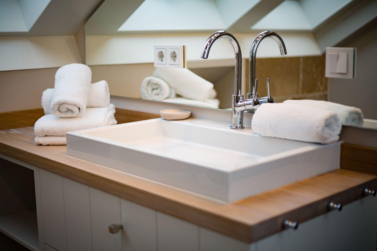 Die Küche ist offen zum Wohnzimmer gestaltet und vollumfänglich ausgestattet. Hier finden Sie alles, was Sie für einen gelungenen Aufenthalt benötigen: Von der Spülmaschine über die moderne Induktionsplatte bis hin zu einer Nespresso-E Kaffeemaschine – Sie können Ihrer Kreativität beim Kochen freien Lauf lassen. Außerdem stehen Ihnen Geschirr und Besteck, Küchengeräte wie Toaster und Wasserkocher sowie ein Kühlschrank mit Gefrierfach zur Verfügung.