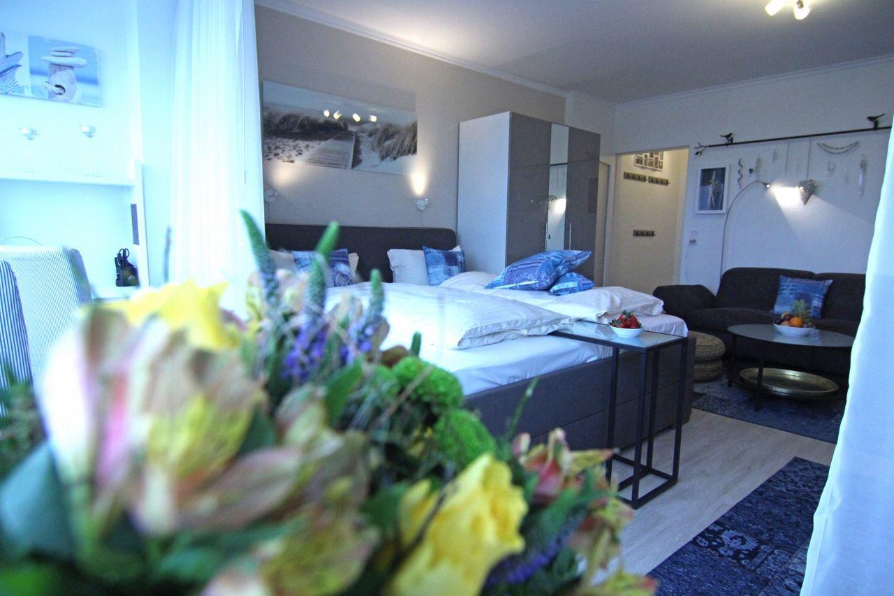 Willkommen im Wohlfühl-Appartement "Freya". Genießen Sie Ihren Urlaub direkt in Strand- und Zentrumsnähe. Freya bietet Platz für zwei Personen und liegt im dritten Stock, von wo Sie die Aussicht auf die Dünen und einen kleinen Meerblick genießen können. Die Wohnung wurde Anfang 2017 komplett renoviert und mit viel Liebe eingerichtet. Sie verfügt über ein modernes Boxspringbett und eine gemütliche Sofaecke, schwenkbaren Flat-Screen-Fernseher und HiFi-Anlage mit USB-Anschluss. Die gemütliche Essecke sowie ein Schreibtisch befinden sich direkt am großen Panoramafenster. WLAN steht kostenlos zur Verfügung. Freuen Sie sich auf eine zum Wohnbereich offene Küche und ein modernes, helles Duschbad. Münz-Waschmaschine und /-Trockner gibt es im Keller. Ihr Auto parkt kostenlos direkt am Haus. Ein Glas-Fahrstuhl ist vorhanden.