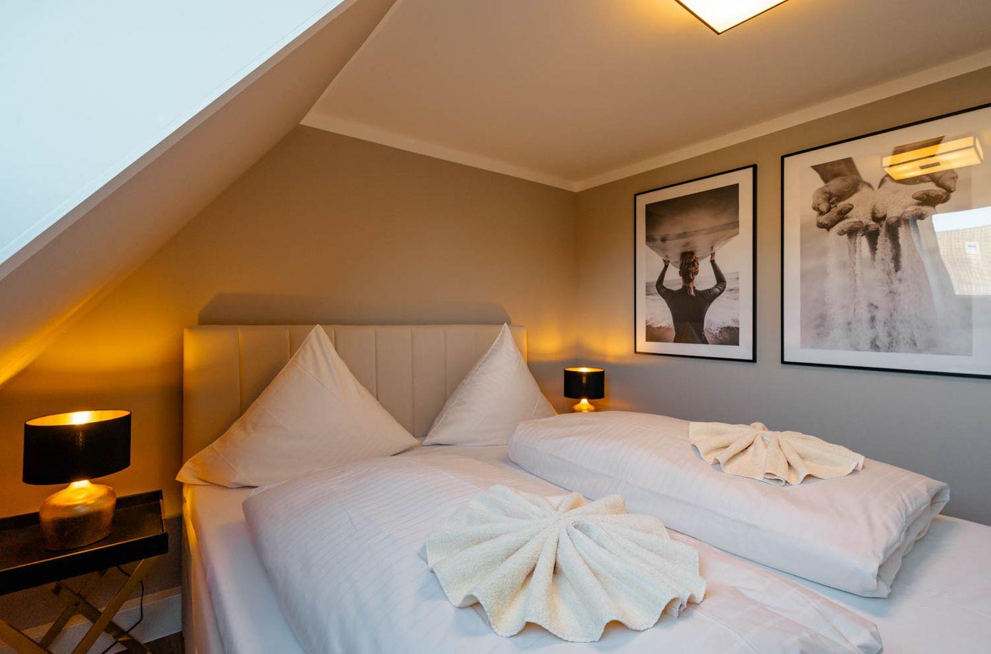 Willkommen in diesem gemütlichen Refugium, direkt unterm Dach: "diFalko" ist ein 2-Zimmer-Ferienappartement im friedlichen Süden von Westerland. Es liegt im ersten Stock einer kleinen Appartementanlage. Zum Strand sind es von hier aus nur circa 400 Meter, in die City kein Kilometer und der Bäcker für die knackfrischen Frühstücksbrötchen liegt auch gleich um die Ecke.
