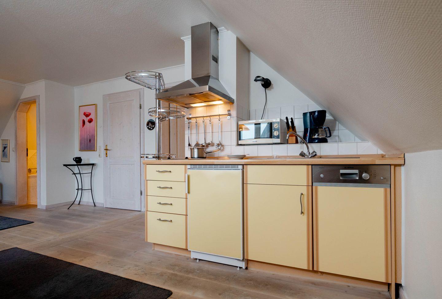 Moin, moin und herzlich Willkommen im Norden von Westerland. Diese 2-Zimmer-Ferienwohnung "Fähnrich“ liegt im Haus "Admiral" und nahe beim Strandübergang der Friesischen Straße, der auf die nördliche Promenade der "Inselhauptstadt" führt. Sie ist quasi ein sehr praktisches Konzentrat mit offener Küche, eingerichtet für maximal zwei Personen, mit separatem Schlafzimmer mit 180er Doppelbett und hat sogar einen eigenen Außenparkplatz. Wobei Sie genaugenommen gar kein Auto brauchen an dieser Adresse, sowohl der Strand als auch die Westerländer Innenstadt und die Supermärkte sind fußläufig bequem erreichbar. Und auch sonst fehlt es an nichts: Wlan ist hier selbstverständlich und sogar eine Waschmaschine und ein Trockner gehören zum Haus, Sie können also ganz entspannt auch gerne länger bleiben beim "Fähnrich". Und bitte beachten Sie: Hier handelt es sich um eine Nichtraucherwohnung.