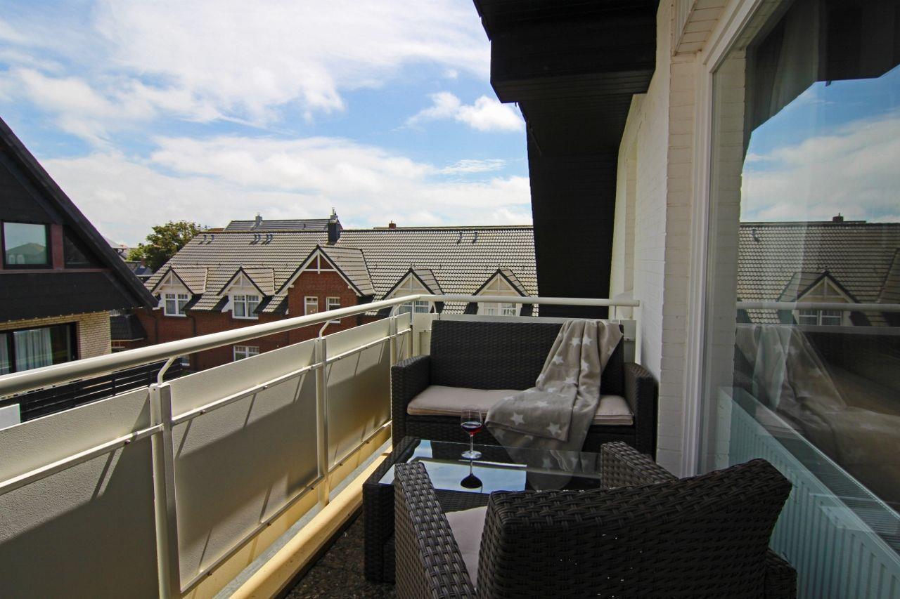 Gemütliche Ferienwohnung "Muck" in Westerland auf Sylt, nahe Strand und Fußgängerzone, mit Balkon und moderner Ausstattung.