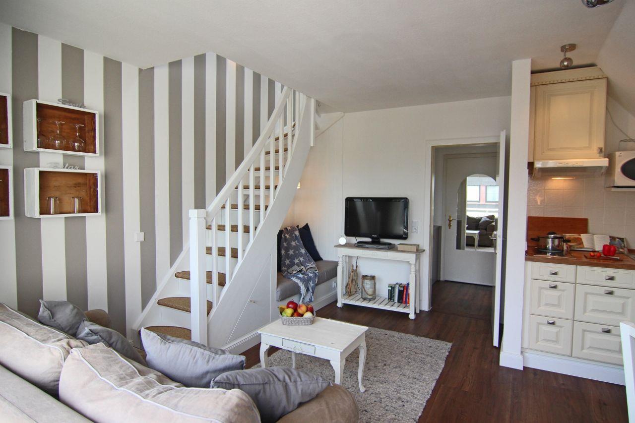 Moin Moin und Willkommen: Die moderne und gemütliche 2-Zimmer-Ferienwohnung "Muck" liegt im Herzen von Westerland, nah bei der Fußgängerzone Friedrichstraße und keine 500 Meter vom Strand entfernt. Sie verfügt über einen Tiefgaragenstellplatz und bietet einen gemeinschaftlichen Waschraum mit Waschmaschine und Trockner gegen Münzzahlung. Erst 2023 wurden das Badezimmer und die Küche vollständig für Sie erneuert. Das Appartement finden Sie im zweiten Stock einer kleinen Wohnanlage, charmant über zwei Ebenen gelegen und insgesamt circa 40 Quadratmeter groß. Zu "Muck" gehört ein großzügiger Ostbalkon mit Blick Richtung Sonnenaufgang. Falls Sie die Wohnung mit einem Kleinkind besuchen möchten, ist auch dies kein Problem. Optional können am Treppenaufgang in der Whg. befindliche Treppenschutzgitter angebracht werden und auch der Schlafbereich bietet ausreichend Platz, um vor den Betten der Eltern ein Reisebettchen zu stellen. Seien Sie unser Gast und genießen Sie eine schöne Zeit in unserer muckeligen Ferienwohnung „Muck“.